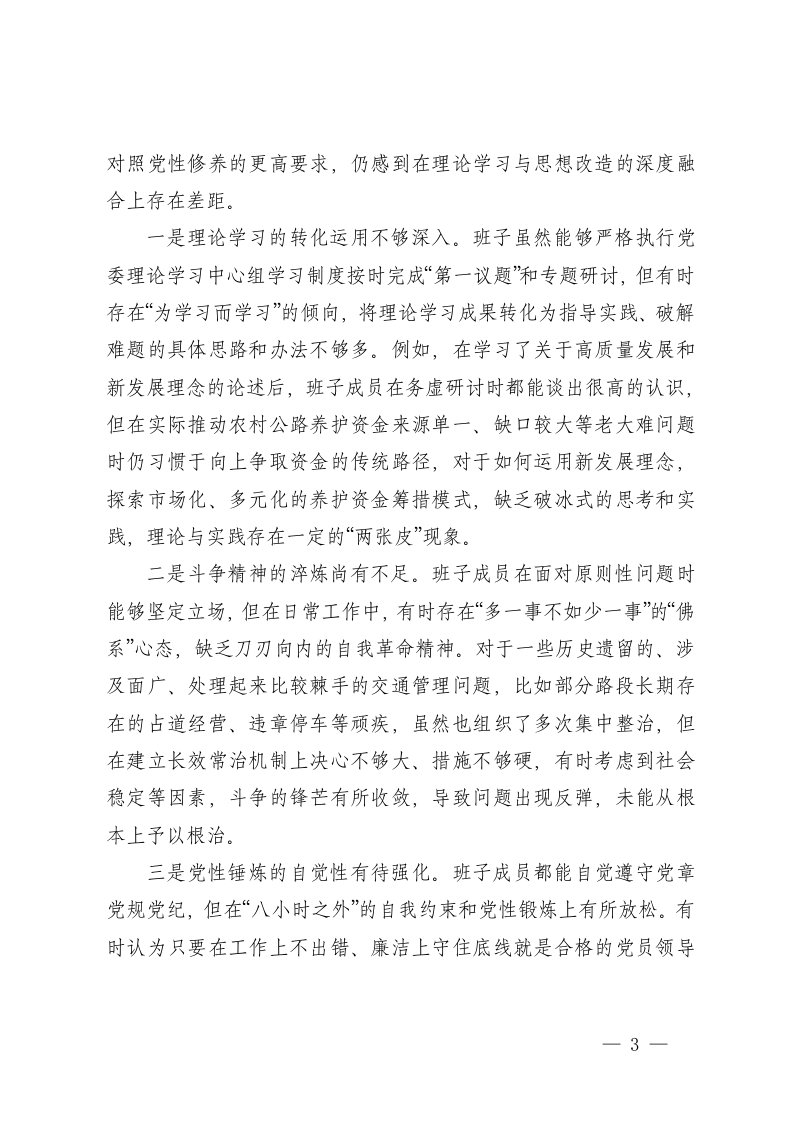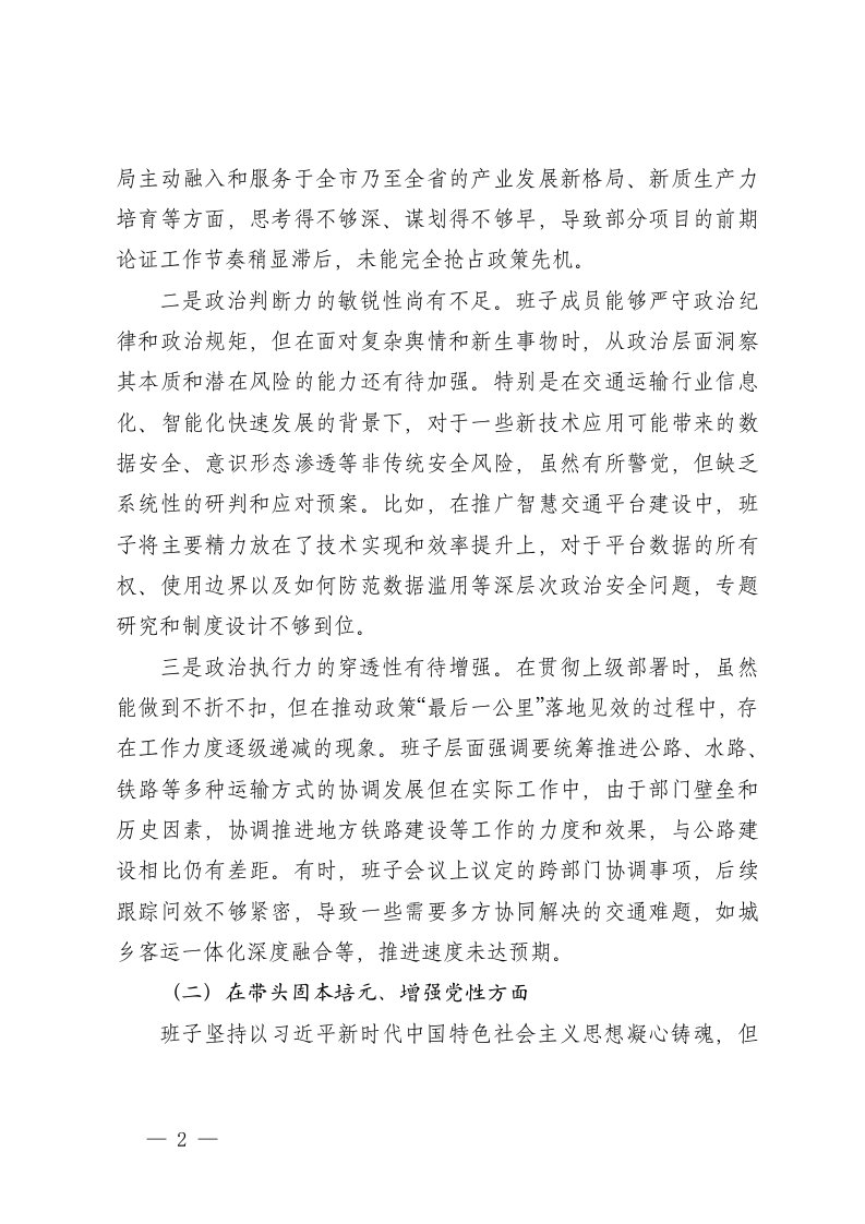 标题:交通运输局领导班子2025年度民主生活会对照检查材料五个带头
