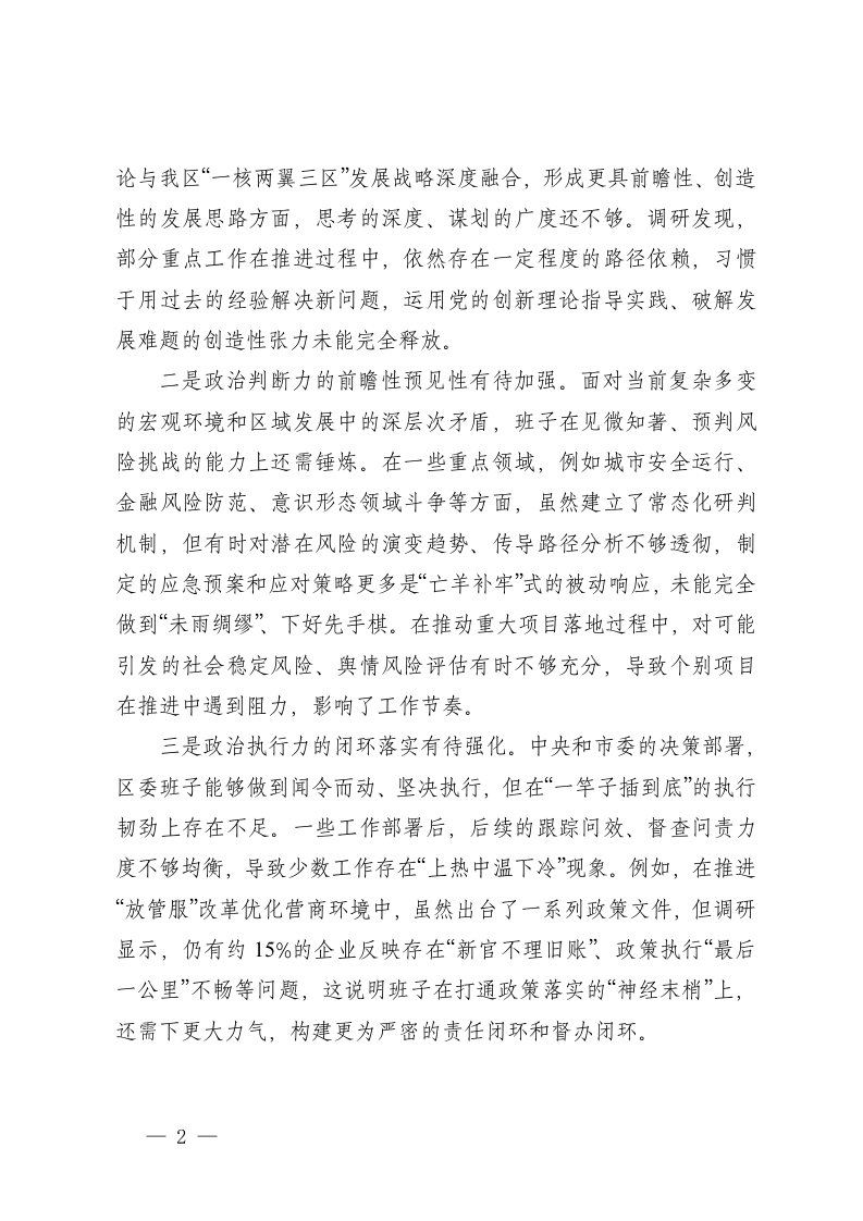 标题:领导班子2025年度民主生活会对照检查材料