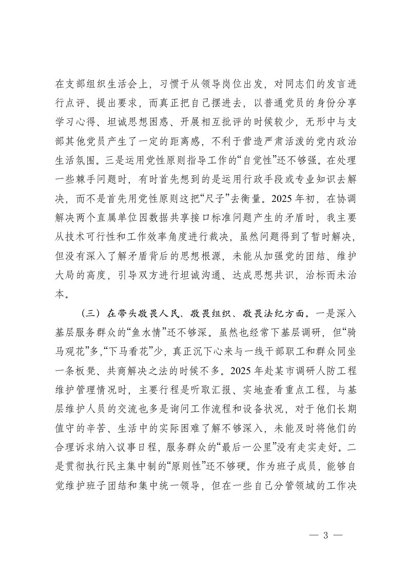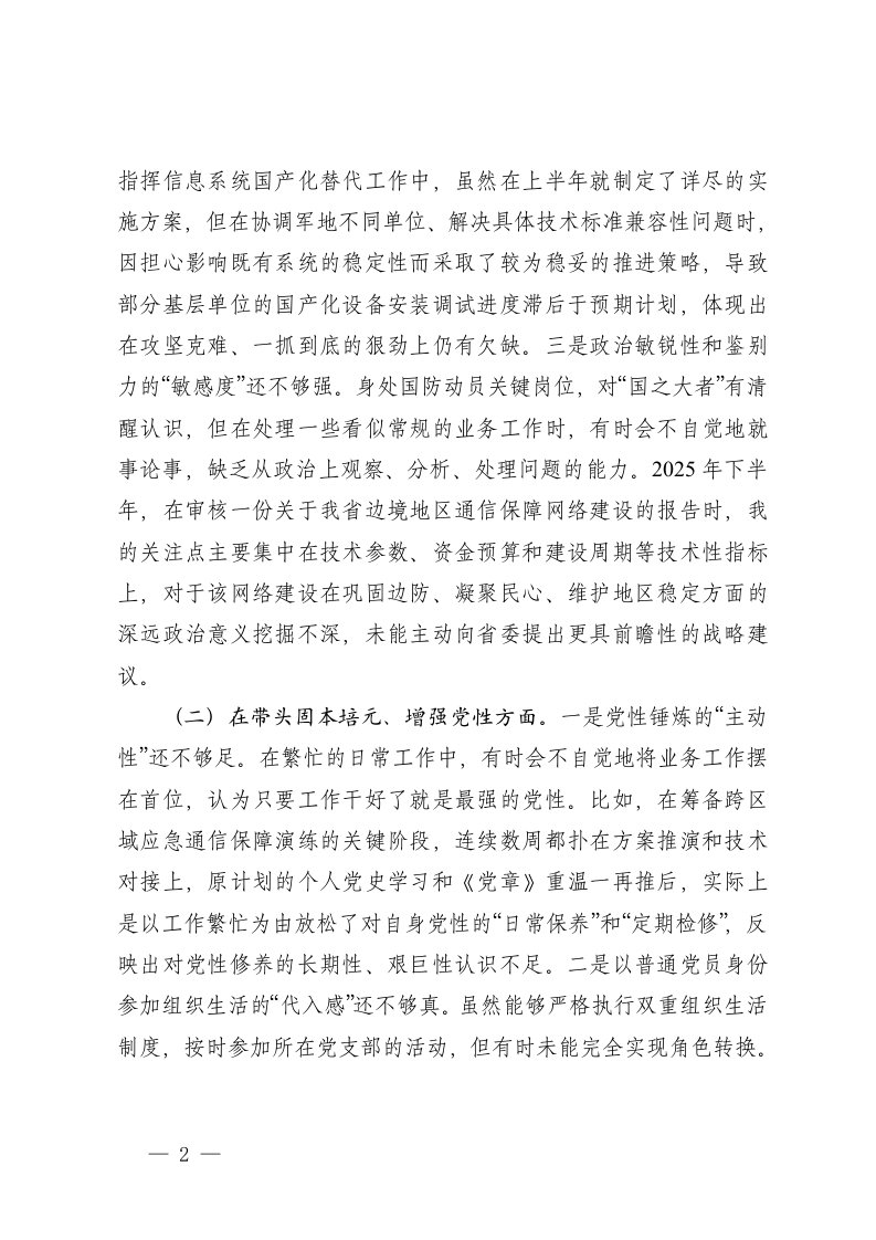 标题:领导班子成员2025年度民主生活会个人对照检查材料六个带头