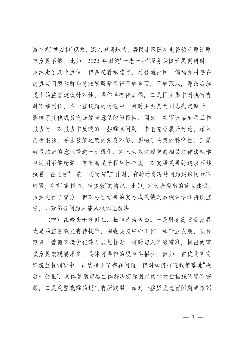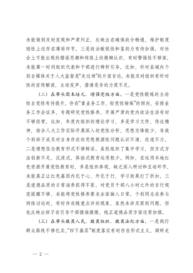 标题:人大领导班子2025年度民主生活会对照检查材料五个带头