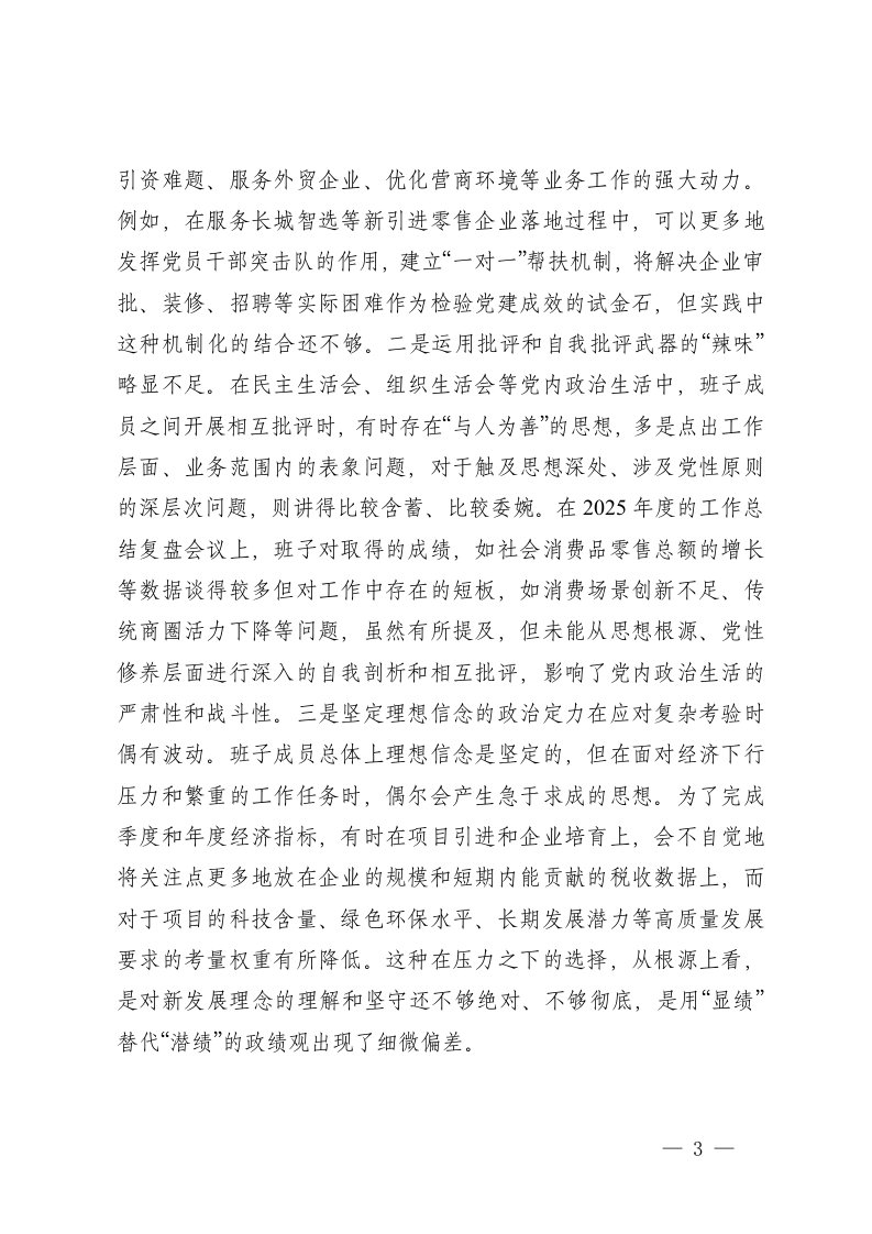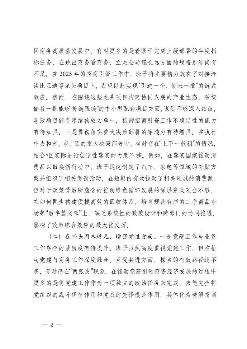 标题:商务局领导班子2025年度民主生活会对照检查材料五个带头