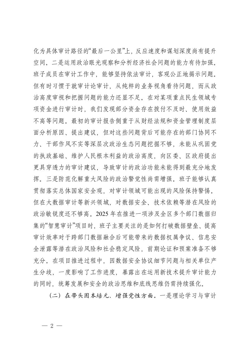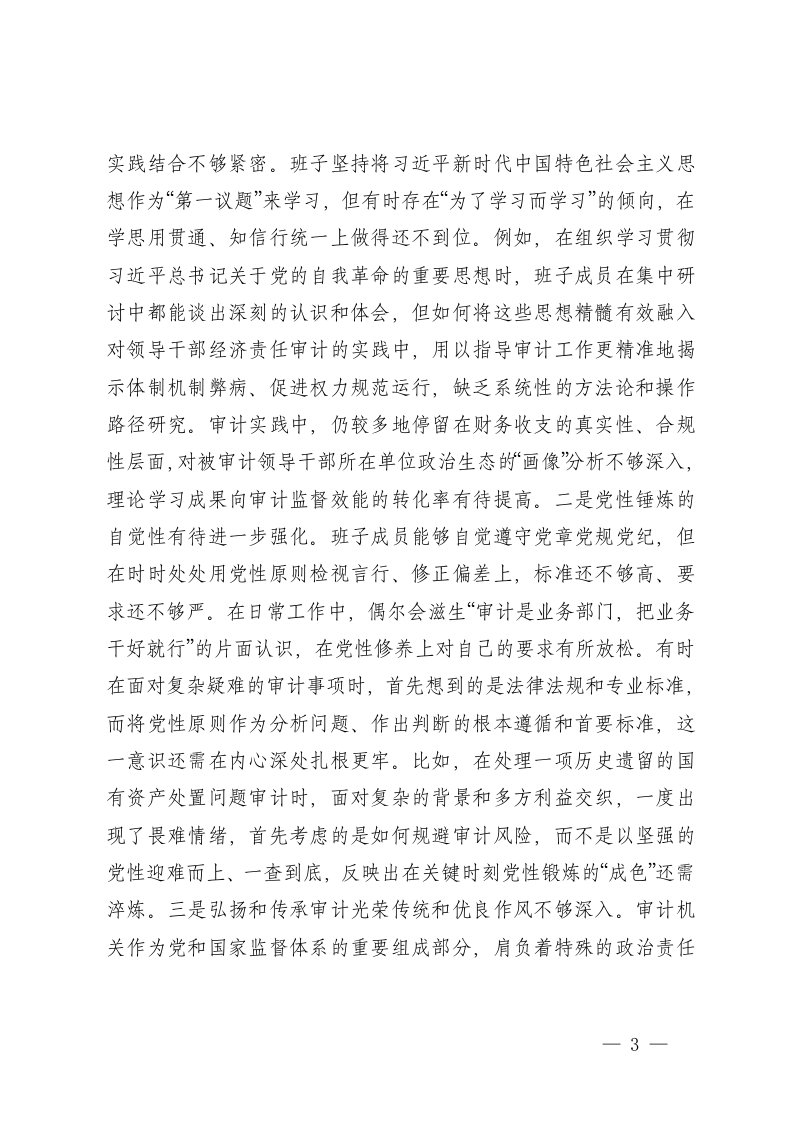 标题:审计局2025年度民主生活会班子对照检查材料五个带头