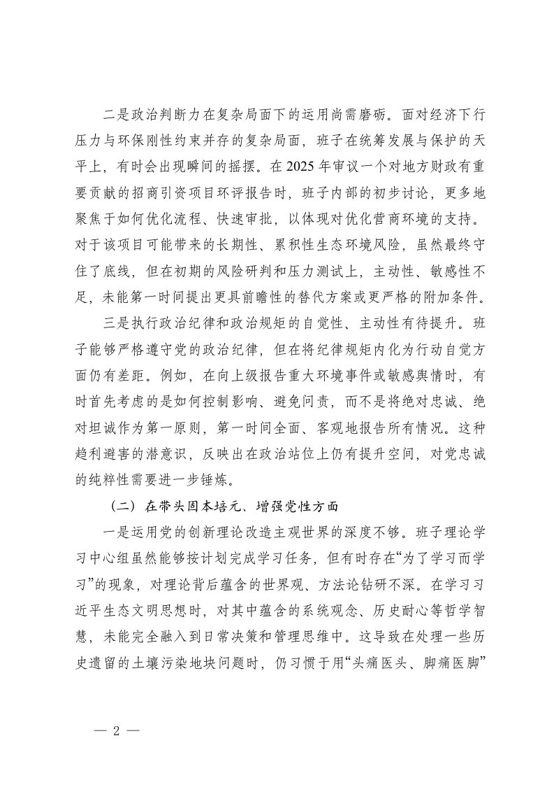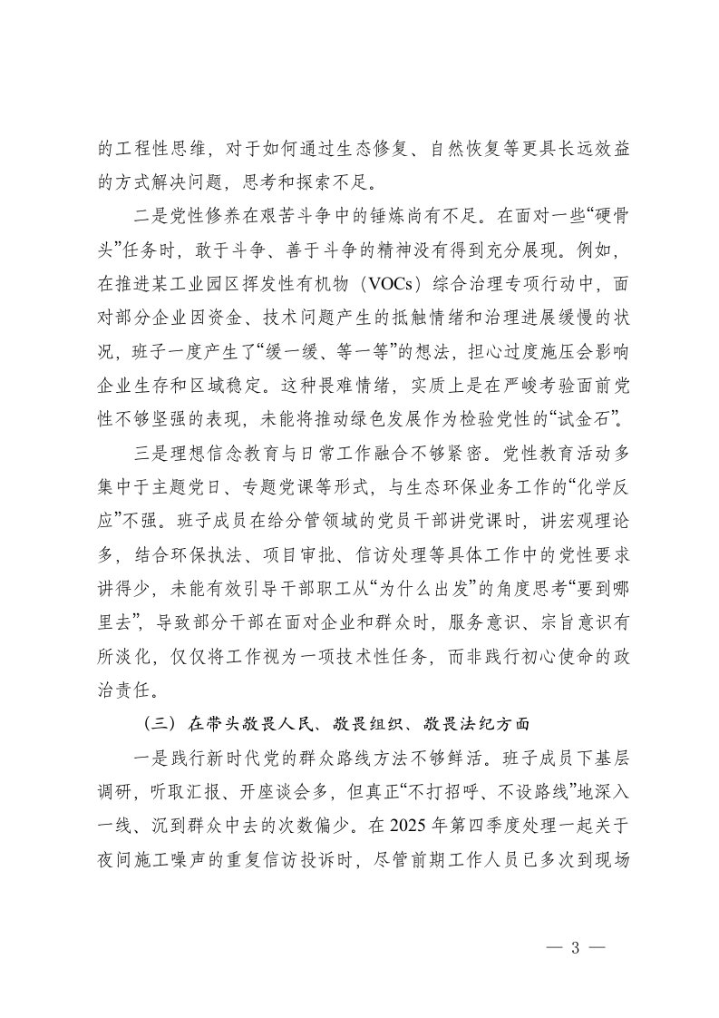 标题:生态环境分局领导班子2025年度民主生活会对照检查材料五个带头