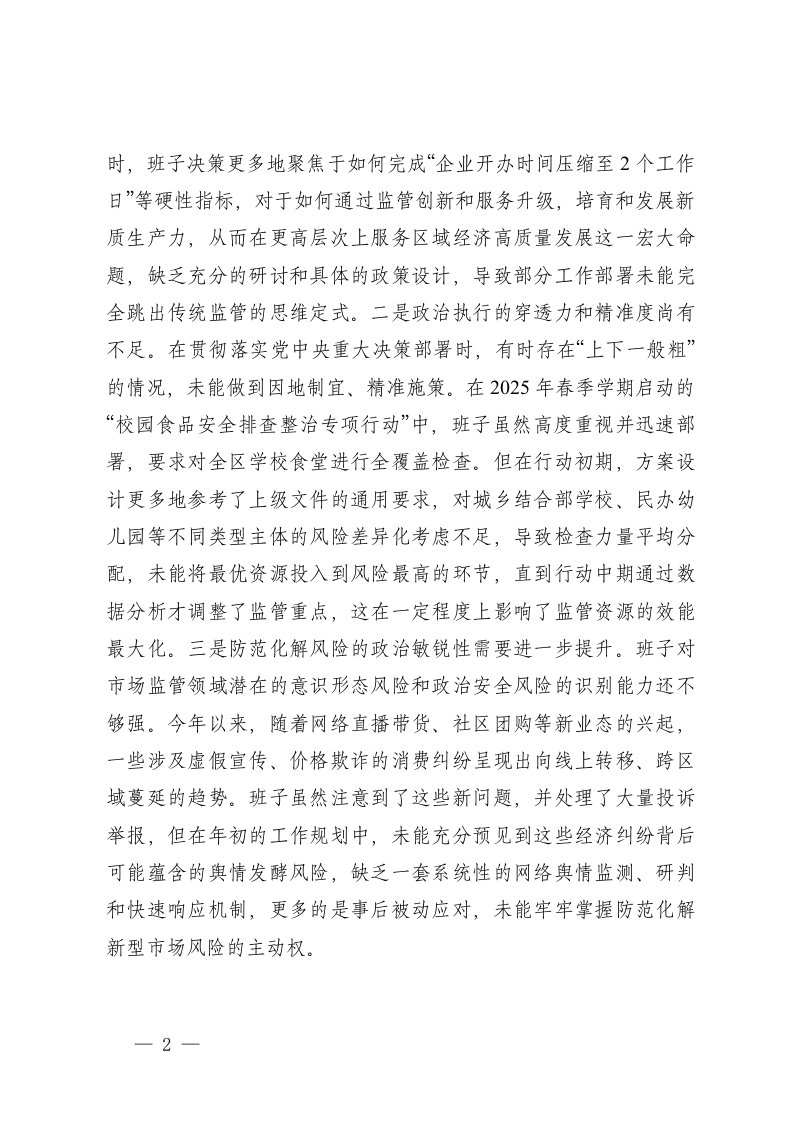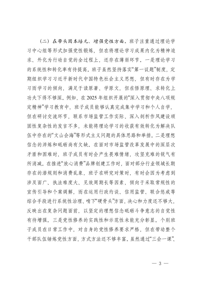 市场监督管理局2025年度民主生活会班子对照检查材料五个带头