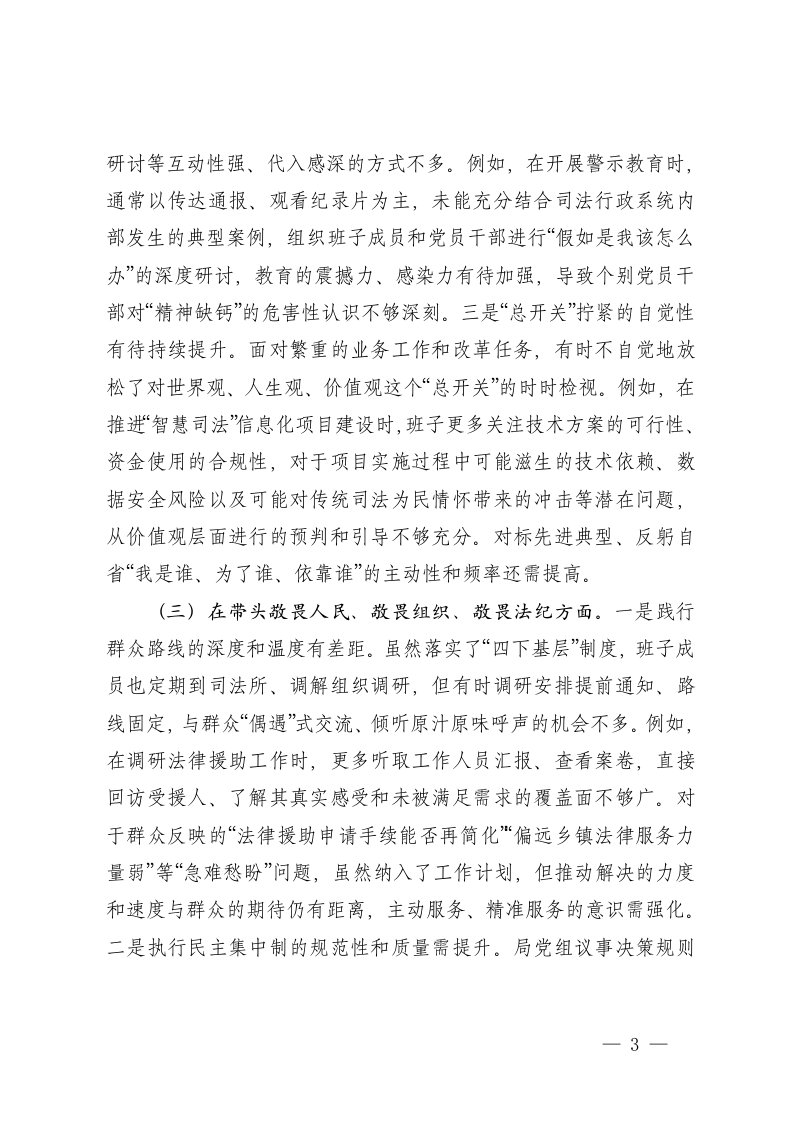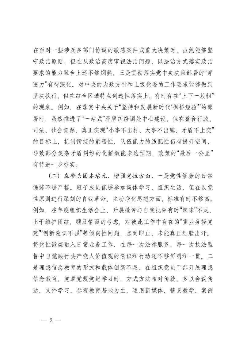 标题:司法局领导班子2025年度民主生活会对照检查材料五个带头
