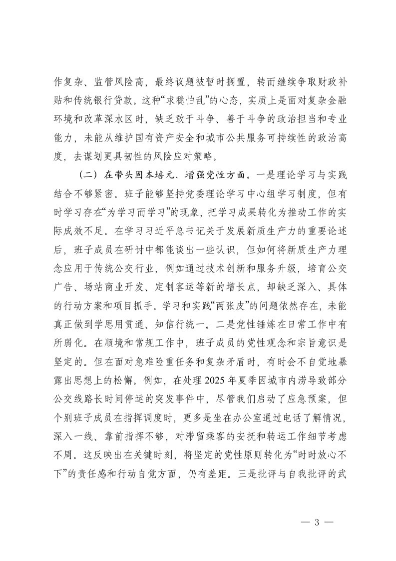 标题:通用领导班子2025年民主生活会五个带头对照检查材料
