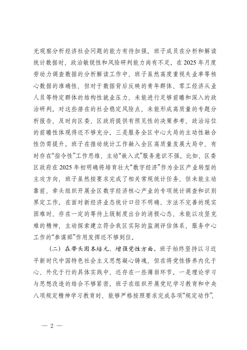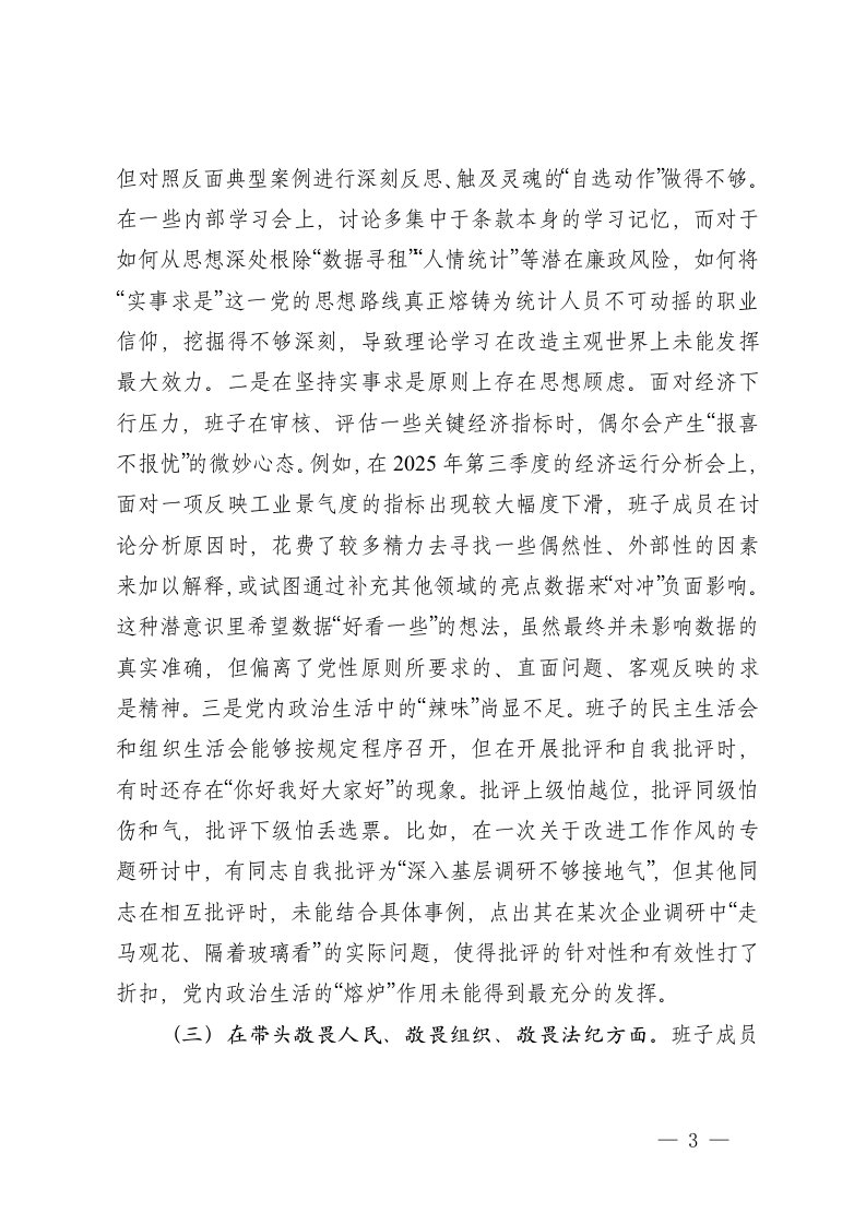 标题:统计局领导班子2025年度民主生活会对照检查材料五个带头