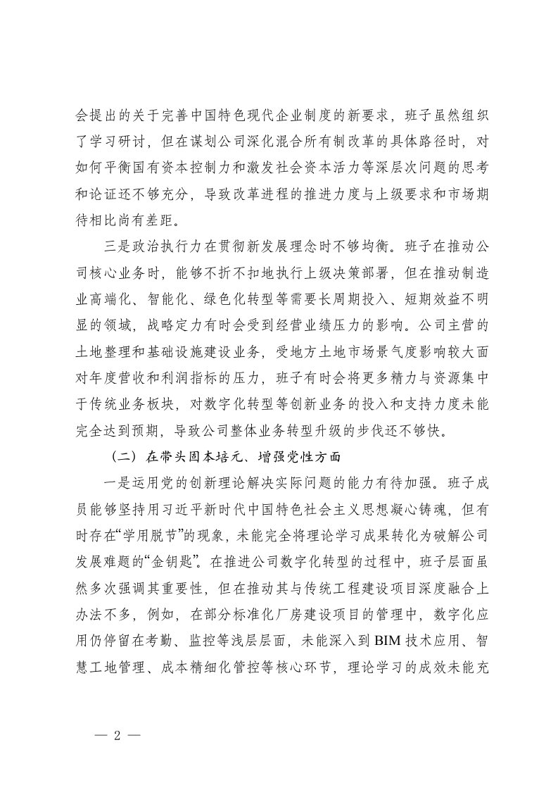 标题:五个带头公司领导班子2025年度民主生活会对照检查材料
