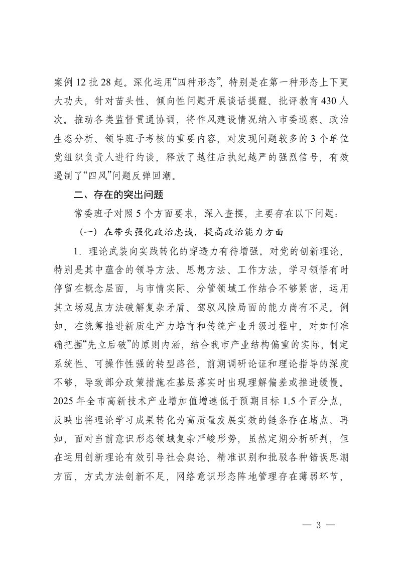 标题:五个带头市委2025年度民主生活会领导班子对照检查材料