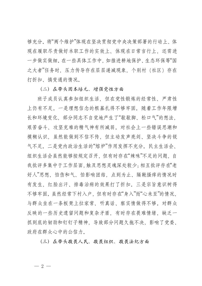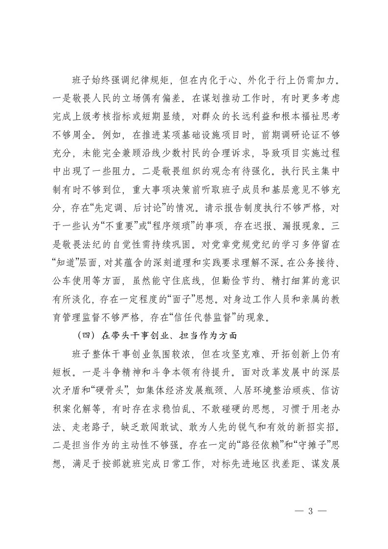 标题:乡镇党委班子2025年度民主生活会五个带头对照检查发言范文