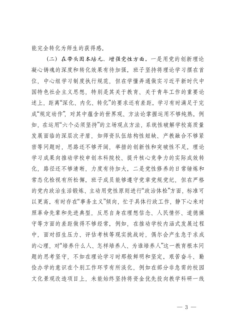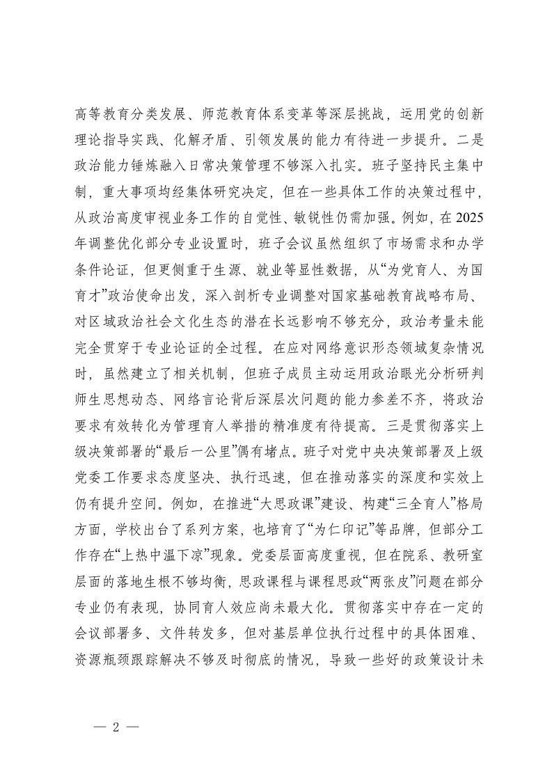 标题:学校党委领导班子2025年度民主生活会对照检查材料五个带头