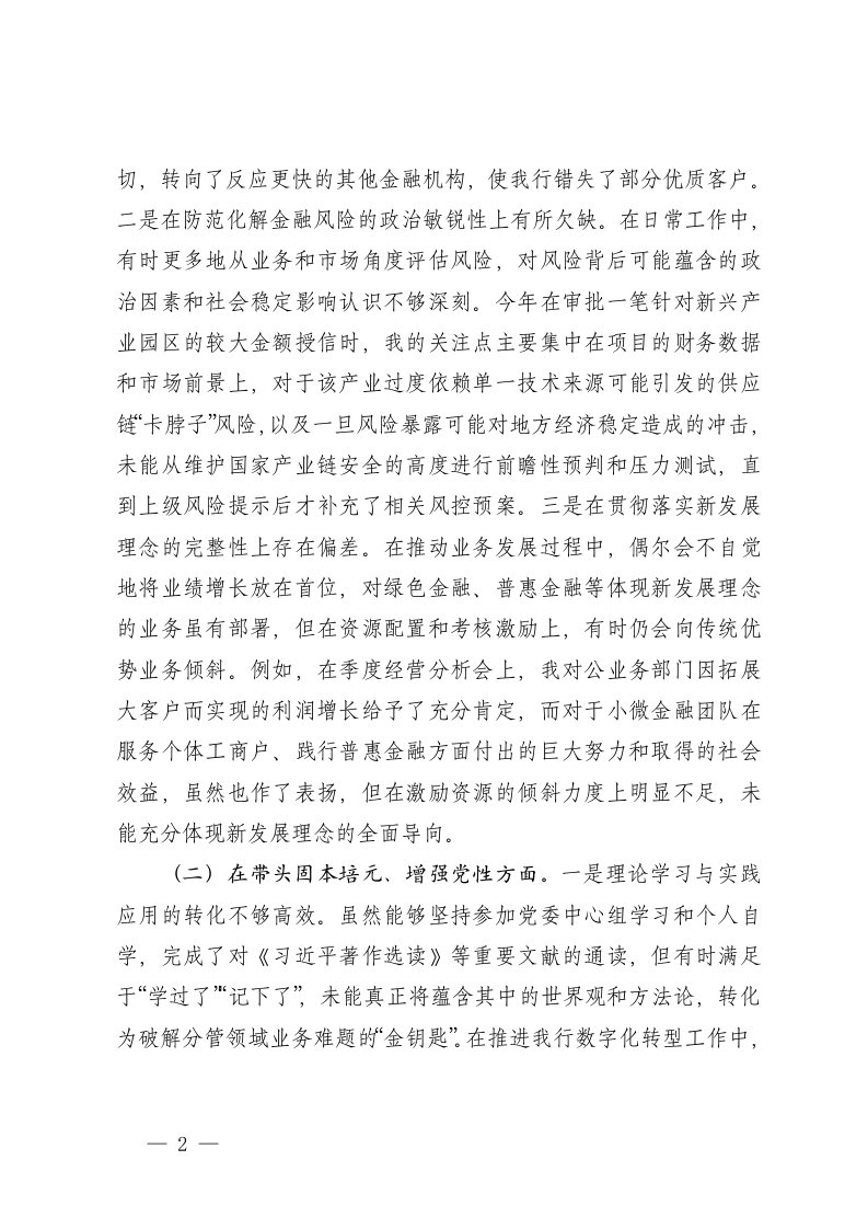 标题:银行班子镇党委班子2025年度民主生活会五个带头对照检查剖析存在的不足