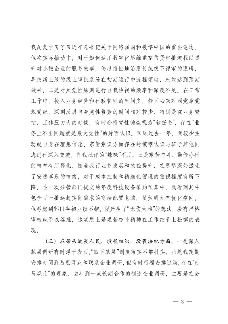 标签: #民主生活会 #银行 #对照检查