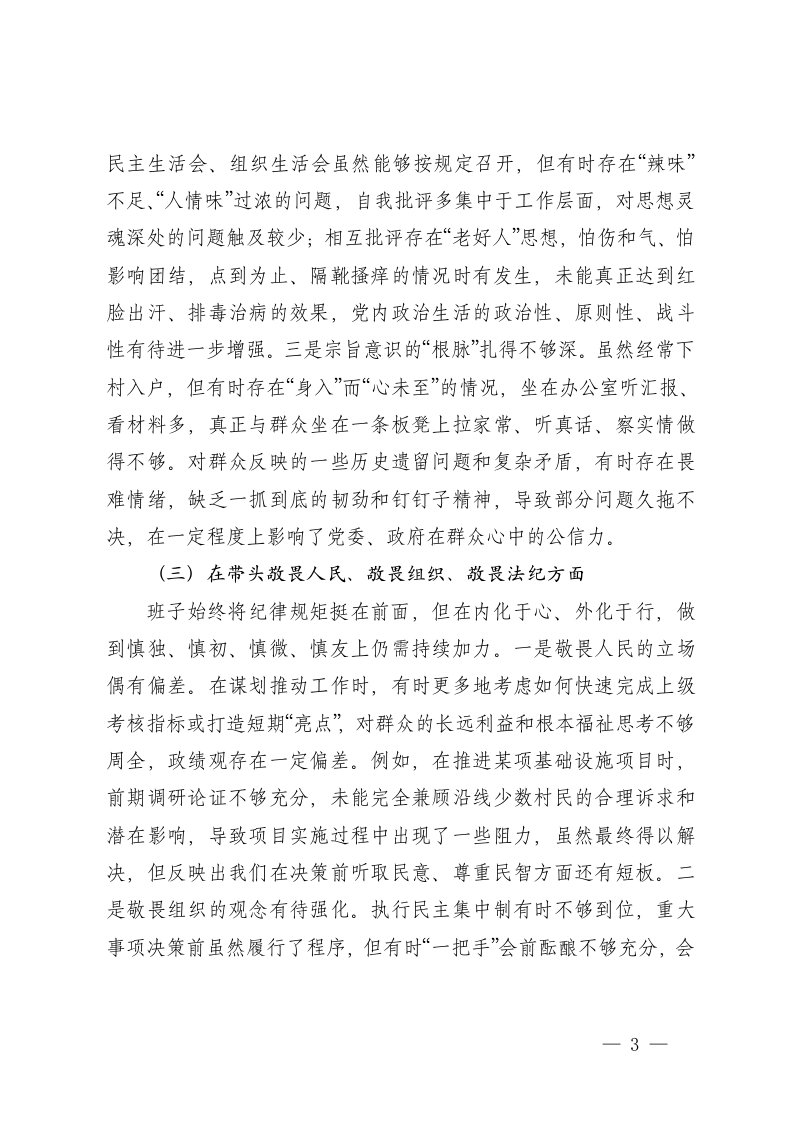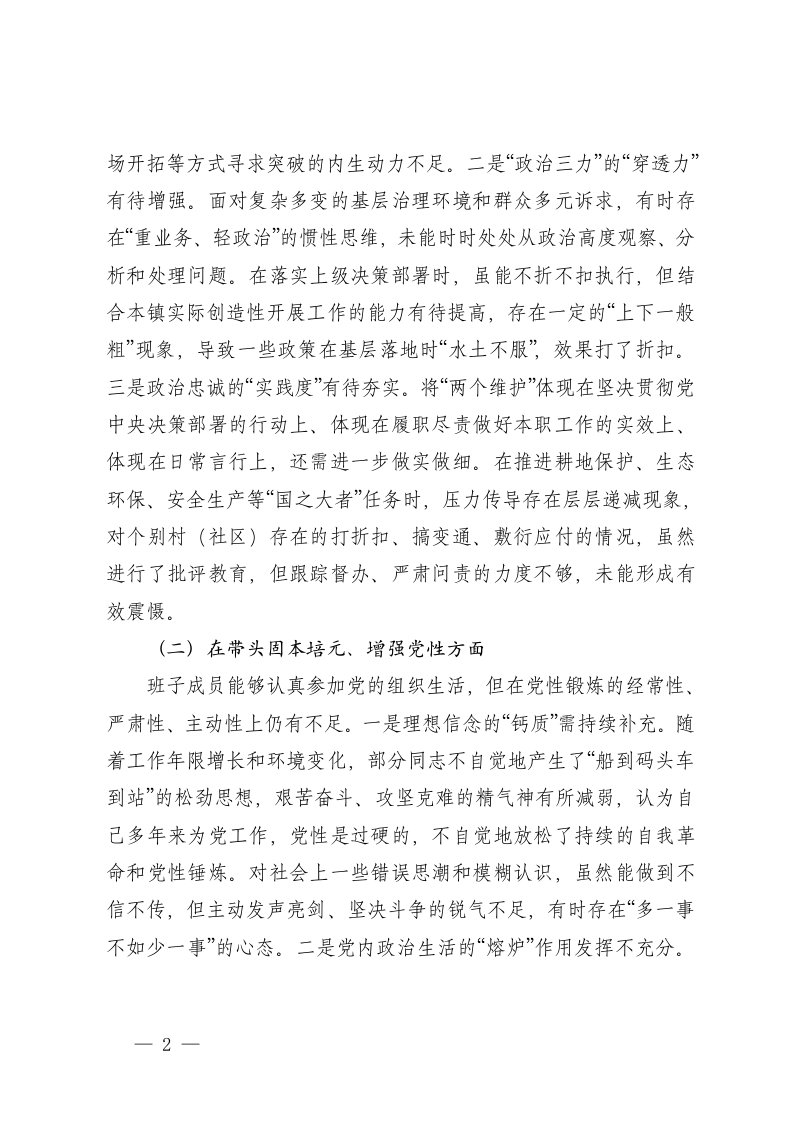 标题:镇党委班子2025年度民主生活会五个带头对照检查材料范文
