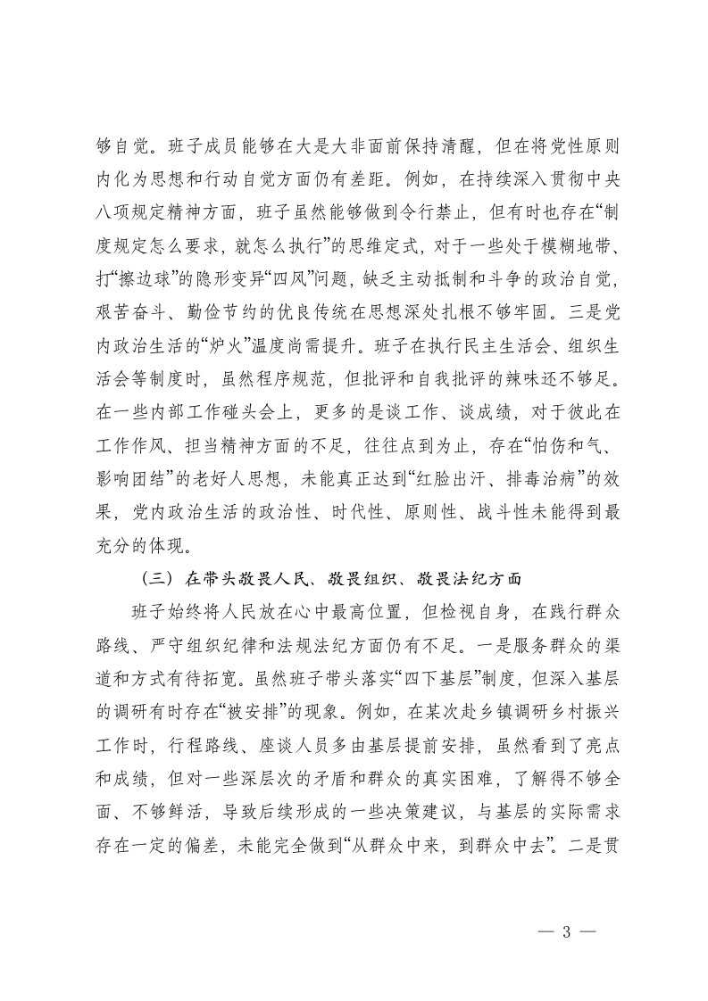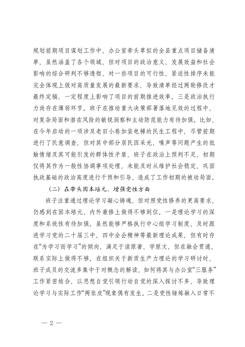 标题:政府办公室2025年度民主生活会班子对照检查材料五个带头