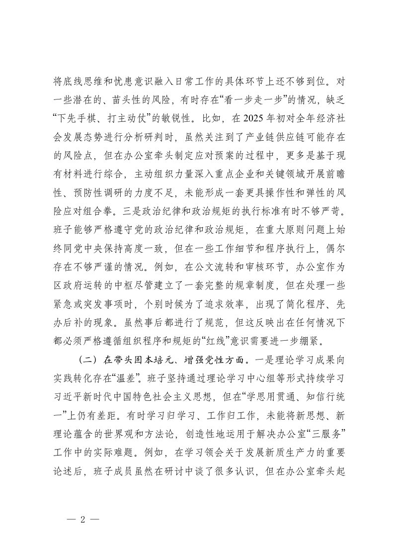 标题:政府办公室领导班子2025年度民主生活会对照检查材料五个带头