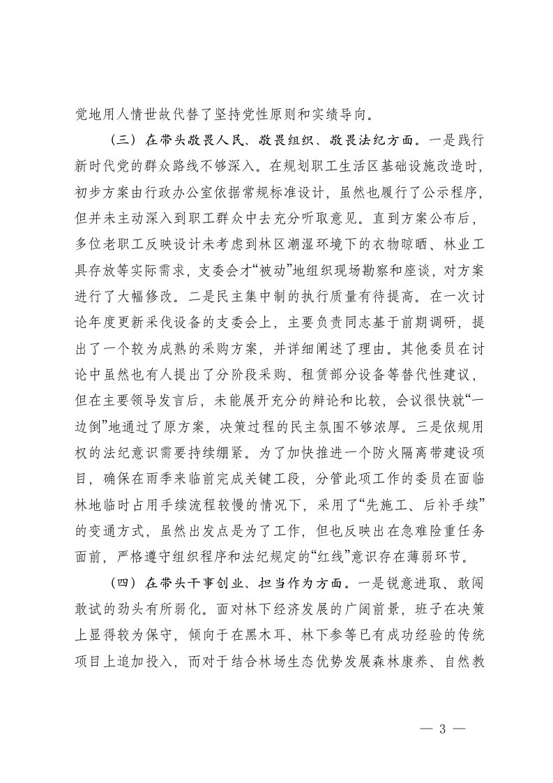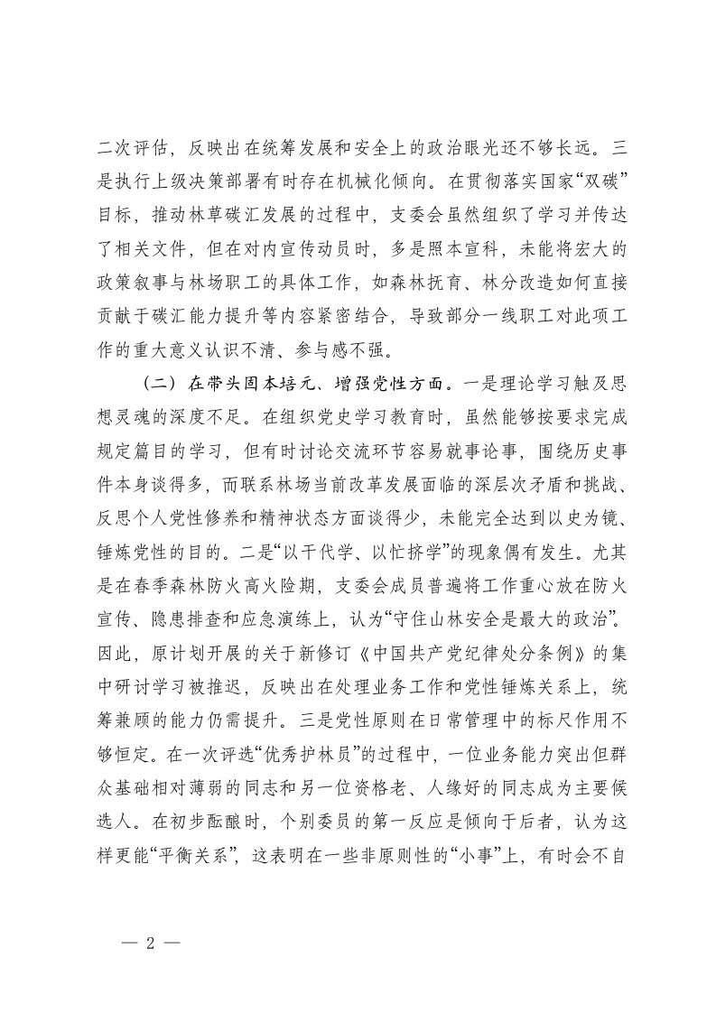 标题:支委会2025年度组织生活会班子对照检查材料五个带头