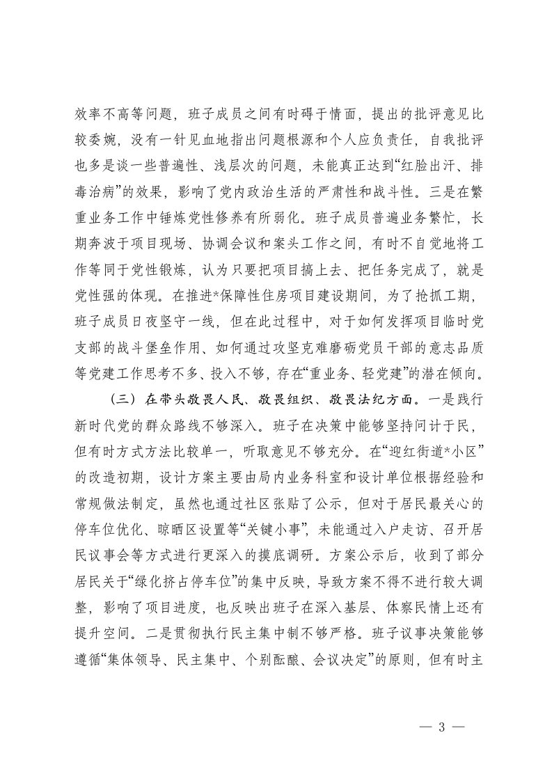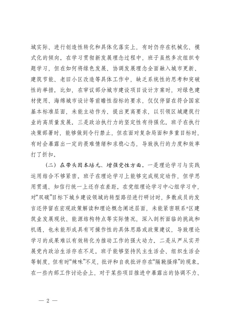 标题:住房和城乡建设局领导班子2025年度民主生活会对照检查材料五个带头