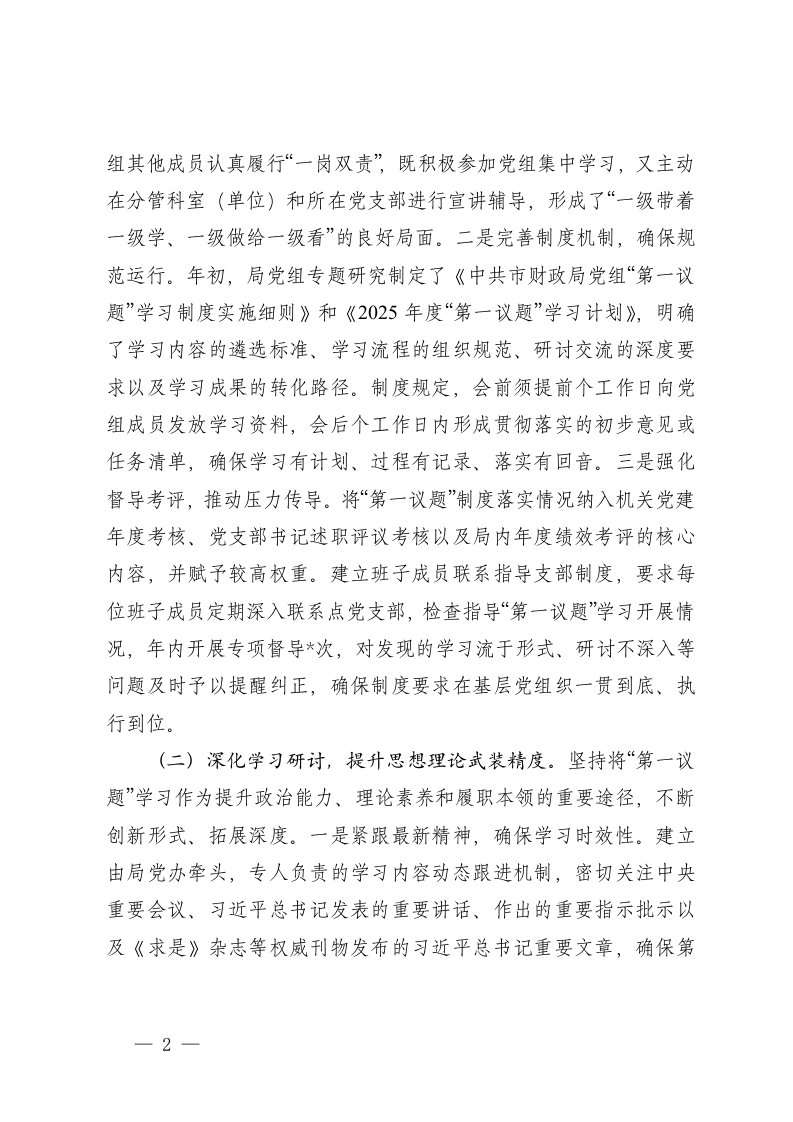 局党组2025年度落实第一议题学习制度情况报告镇关于2025年度贯彻落实第一议题制度和政治要件闭环落实工作情况的报告