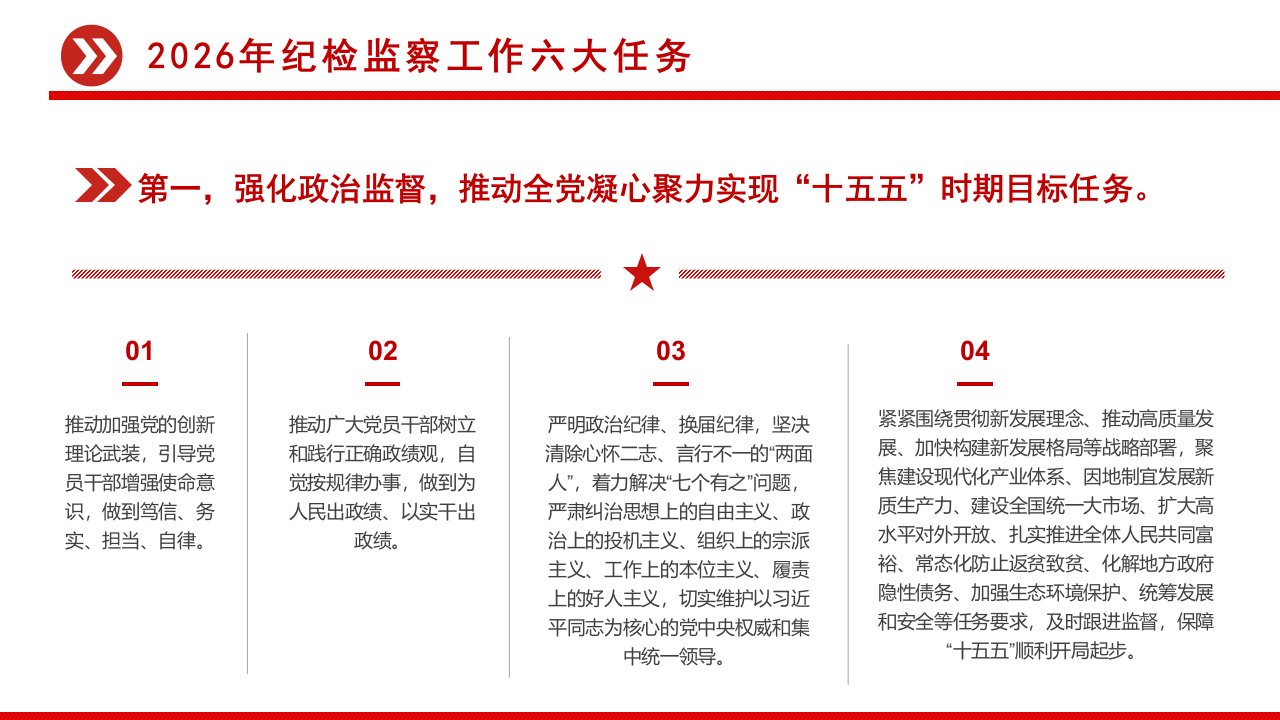 「治国理政ppt模板」纪检监察工作六大任务二十届中央纪委五次全会党课ppt模板(含配套讲稿)