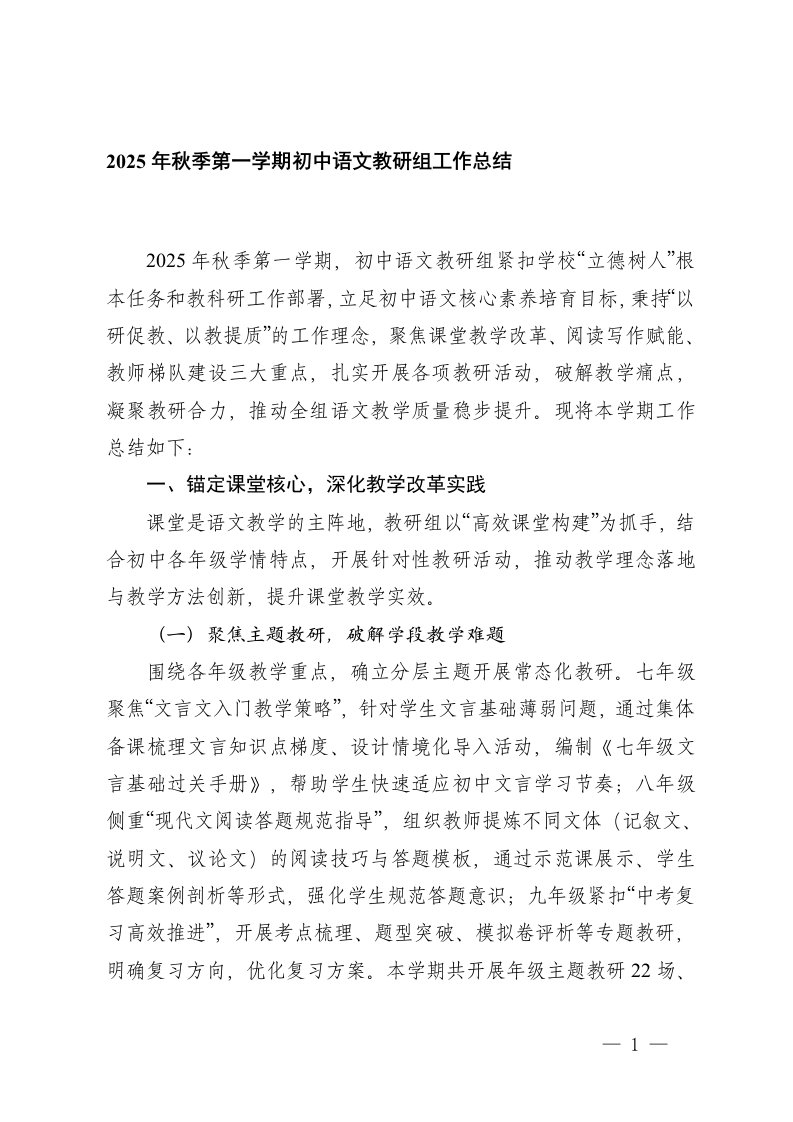 标题:2025年秋季第一学期初中语文教研组工作总结