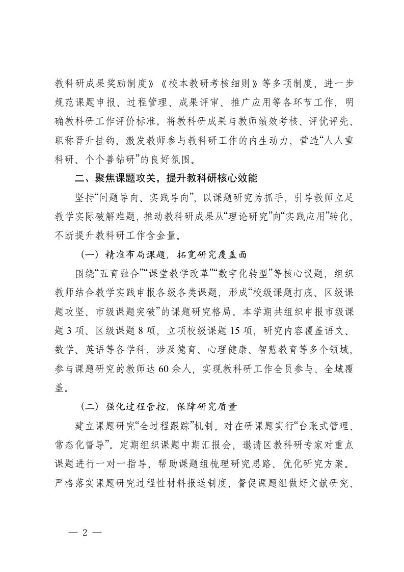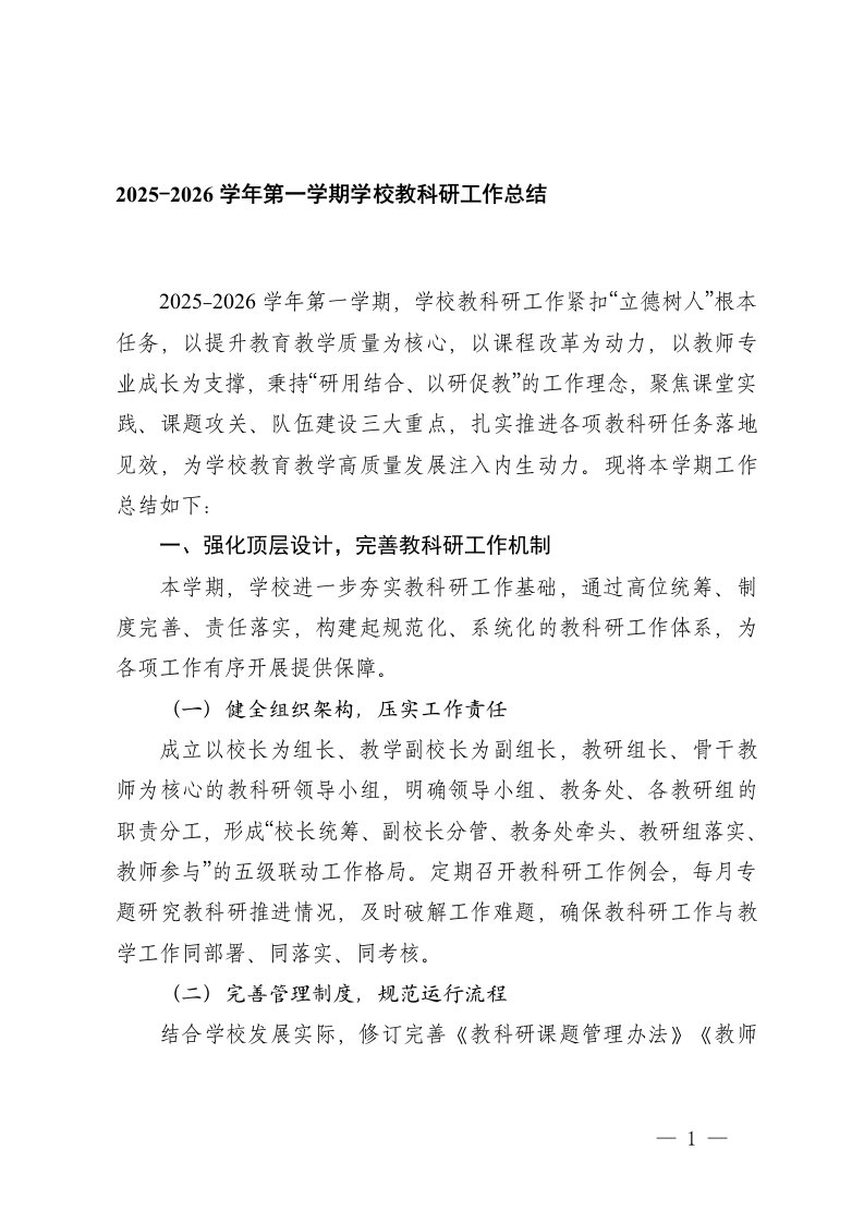 标题:2篇2025-2026学年第一学期学校教科研工作总结