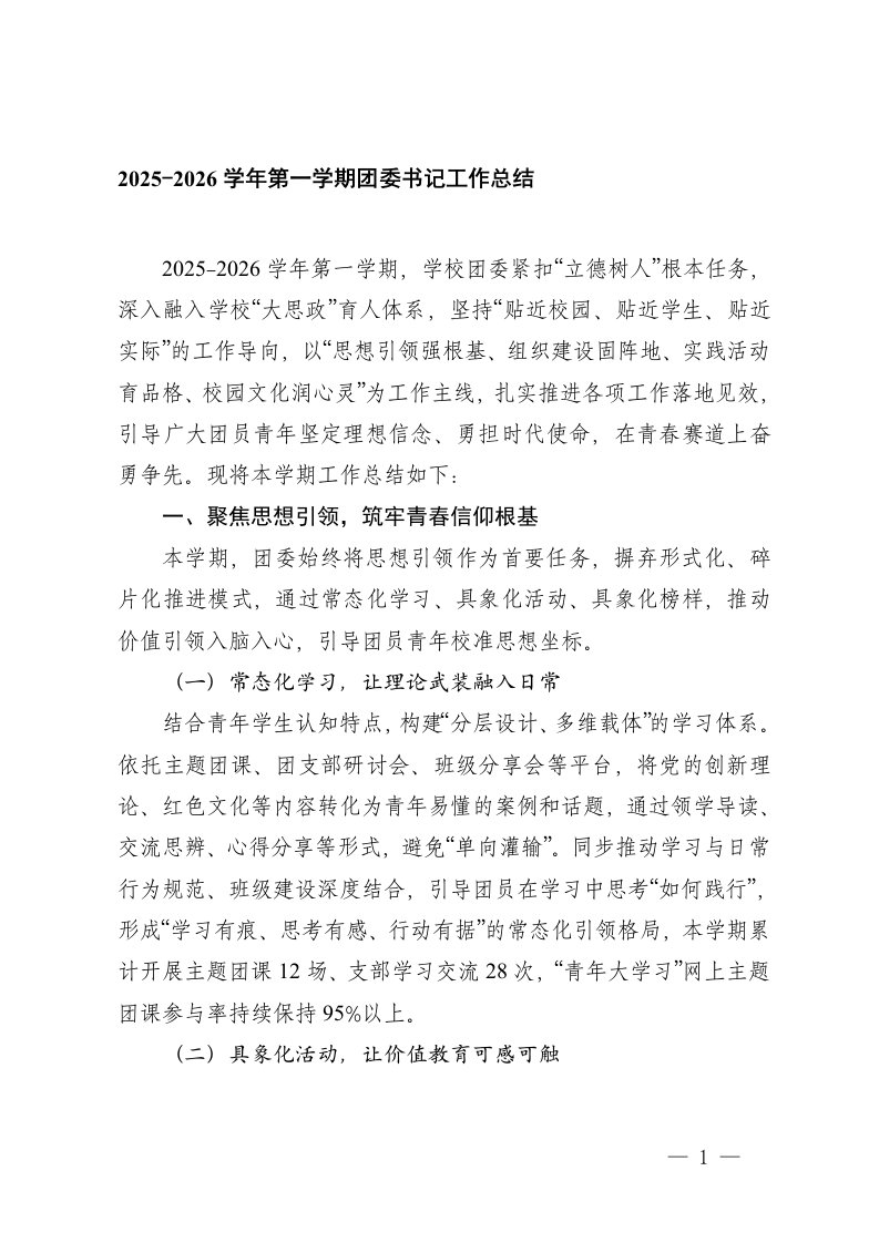 标题:3篇2025-2026学年第一学期团委书记工作总结