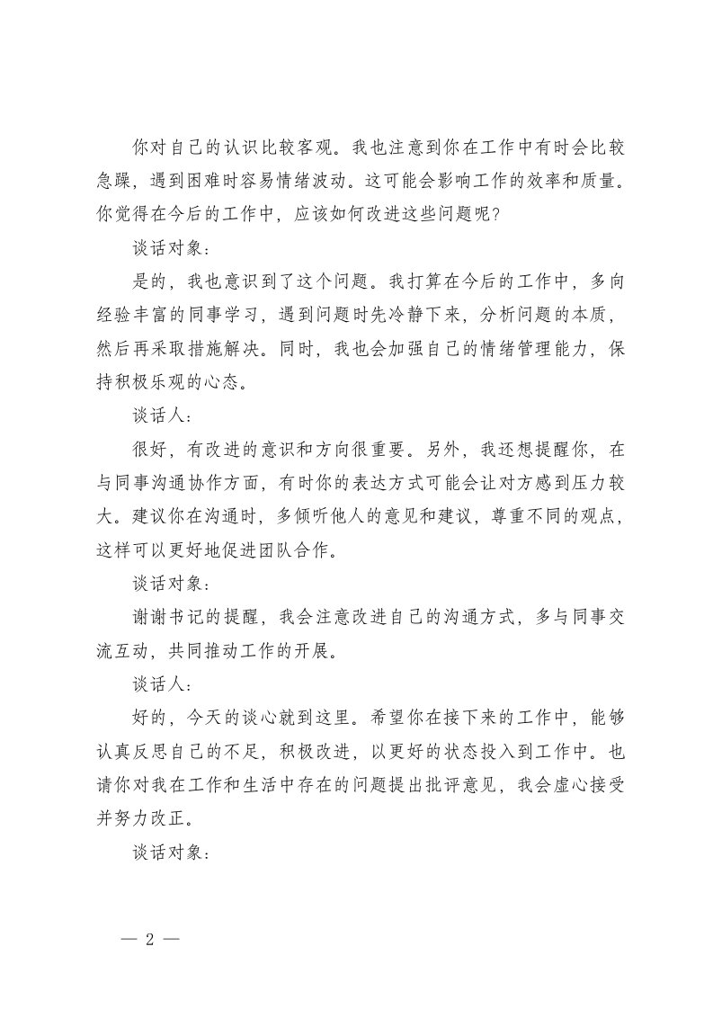 标题:2025年度组织生活会谈心谈话记录2篇