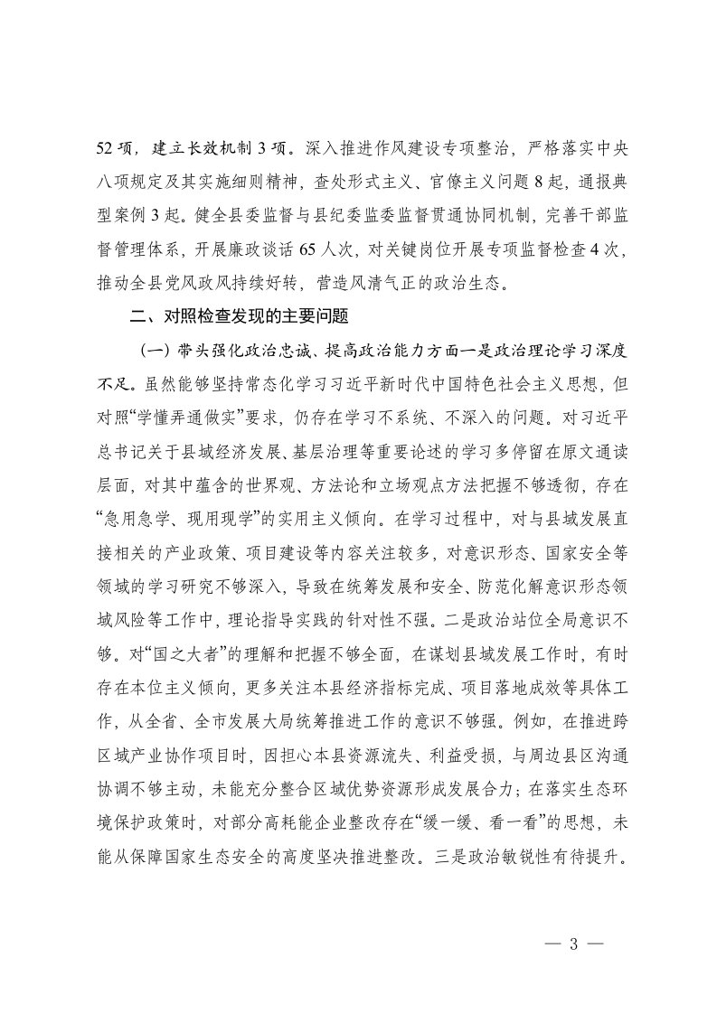汇编上年度民主生活会查摆问题整改落实情况县委书记2025年民主生活会对五个带头照检查发言提纲