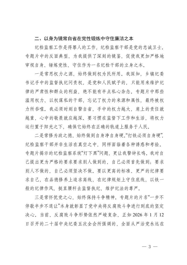 标题:3篇2026年乡镇纪委书记观看反腐专题片一步不停歇半步不退让心得体会