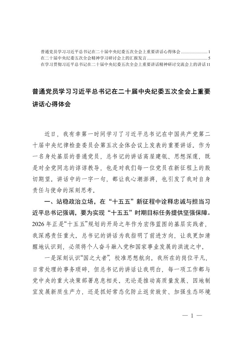 心得体会,讲话,二十届,中央纪委,学习,重要讲话2026年普通党员学习习近平总书记在二十届中央纪委五次全会上重要讲话心得体会心得体会,讲话,二十届,中央纪委,学习,重要讲话2026年普通党员学习习近平总书记在二十届中央纪委五次全会上重要讲话心得体会