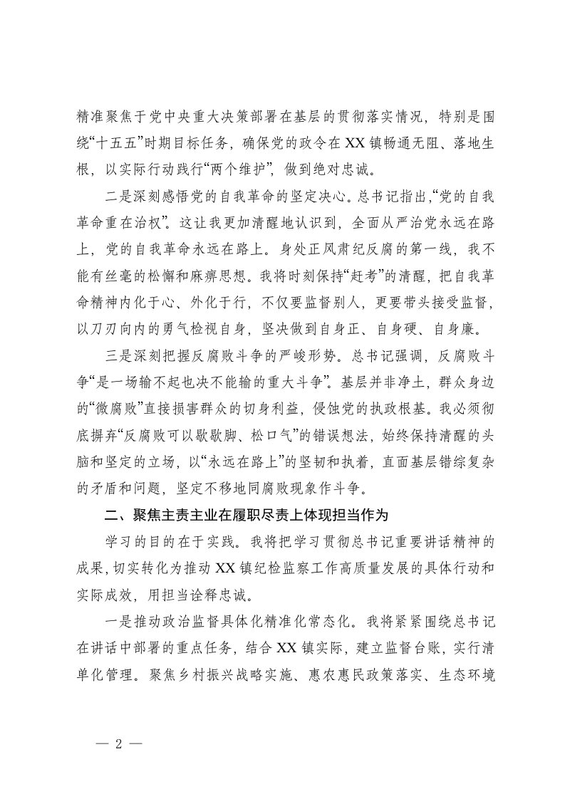国企乡镇纪委书记学习习近平总书记在二十届中央纪委五次全会上重要讲话精神心得体会