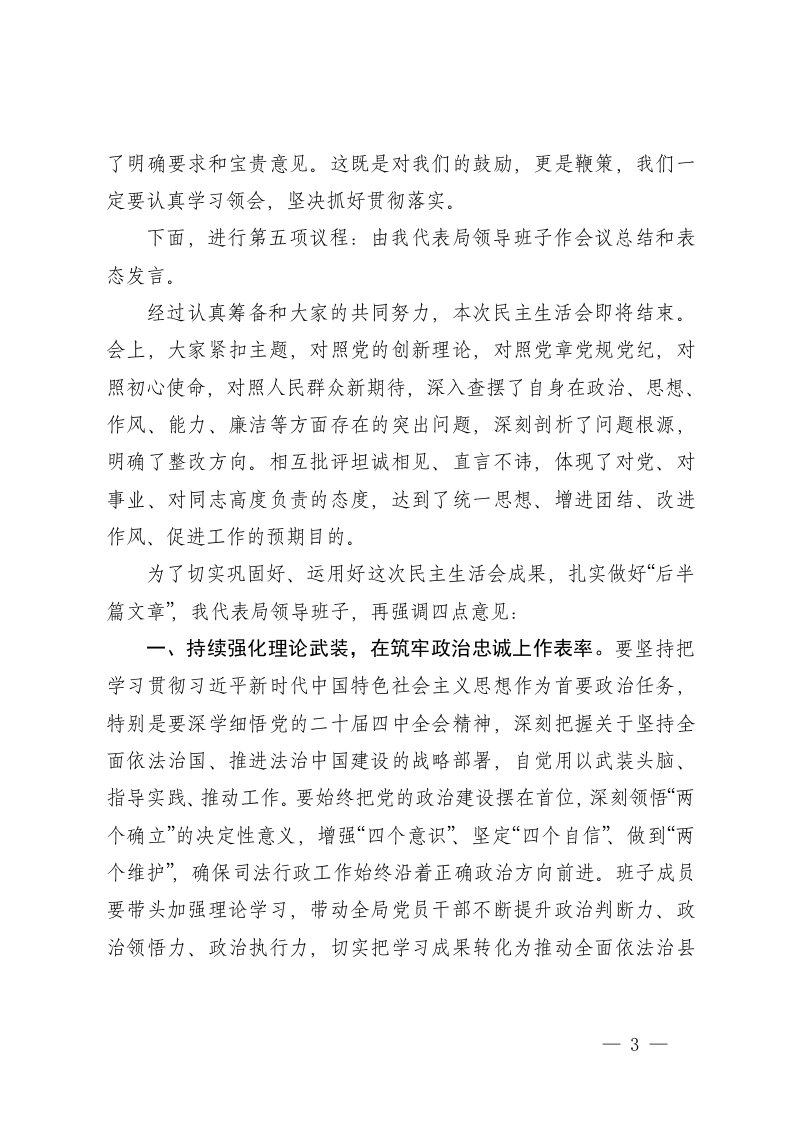 标题:一把手在领导班子2025年度民主生活上的主持词