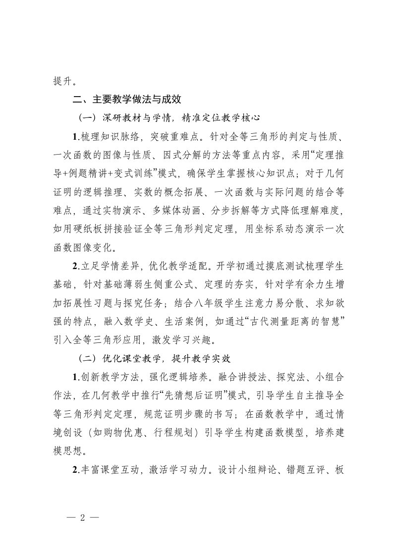 标题:冀教沪科人教北师大版2025年秋季学期八年级数学上册教学工作总结