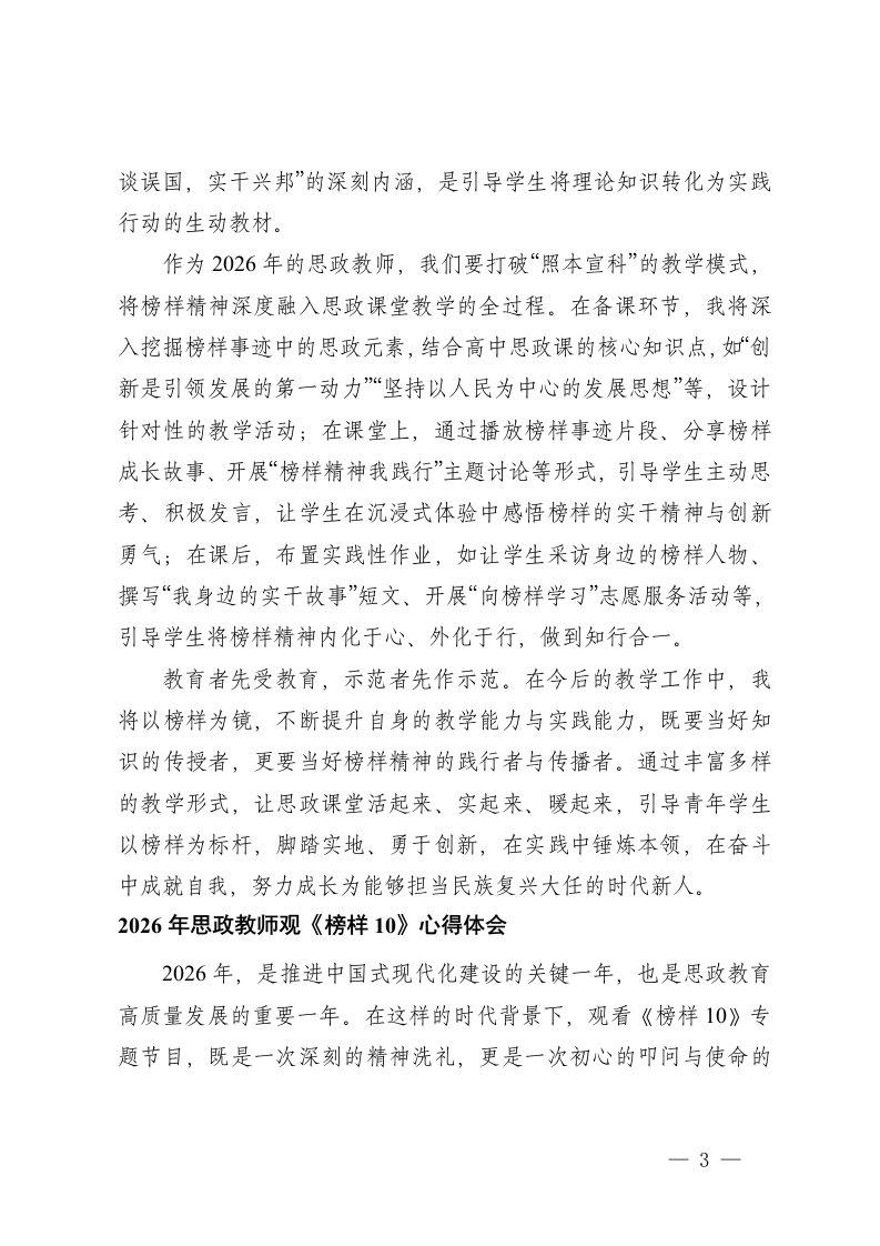 标题:5篇2026年思政教师观榜样10心得体会
