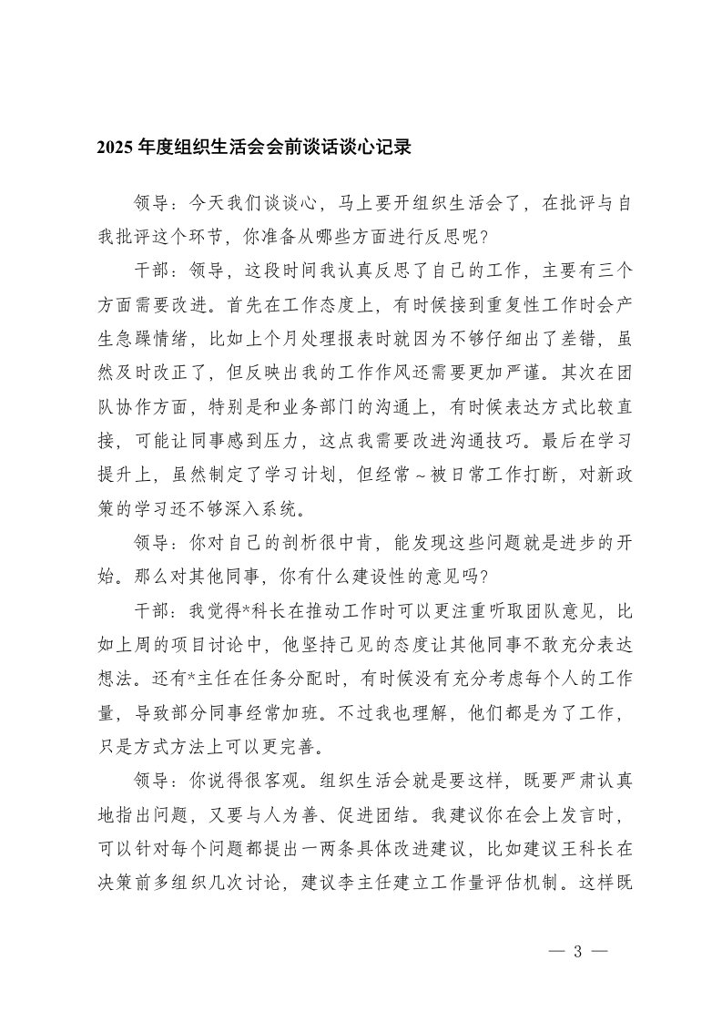 组织生活会,组织生活,生活汇总2025年度组织生活会会前谈话谈心记录组织生活会,组织生活,生活汇总2025年度组织生活会会前谈话谈心记录