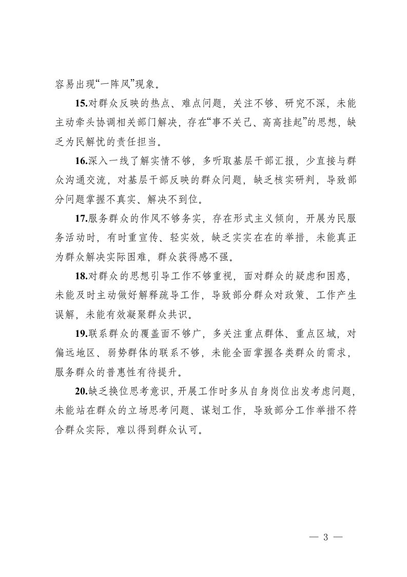 标题:2025年度民主生活会组织生活会联系群众方面互相批评意见建议20条