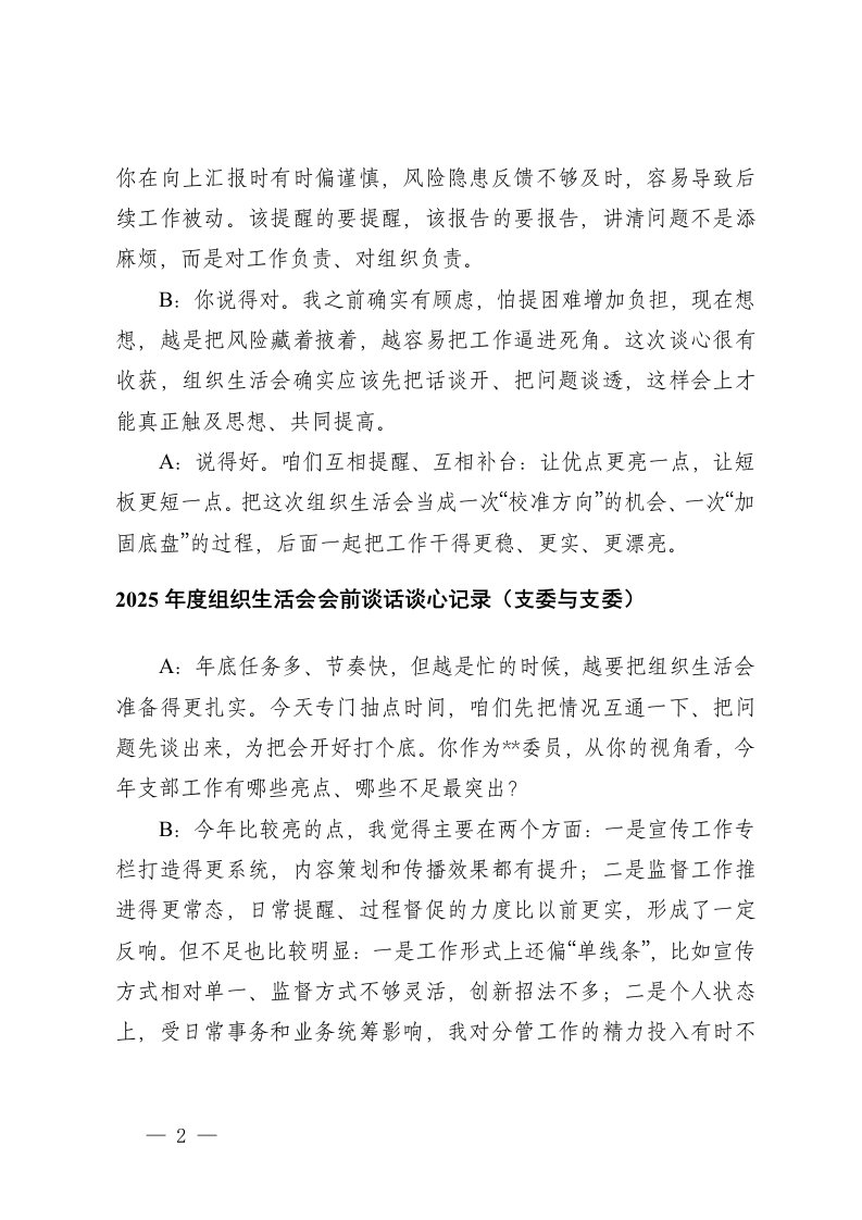 组织生活会,组织生活,谈心谈话,生活2025年度组织生活会会前谈心谈话记录普通党员间支委与支委组织生活会,组织生活,谈心谈话,生活2025年度组织生活会会前谈心谈话记录普通党员间支委与支委
