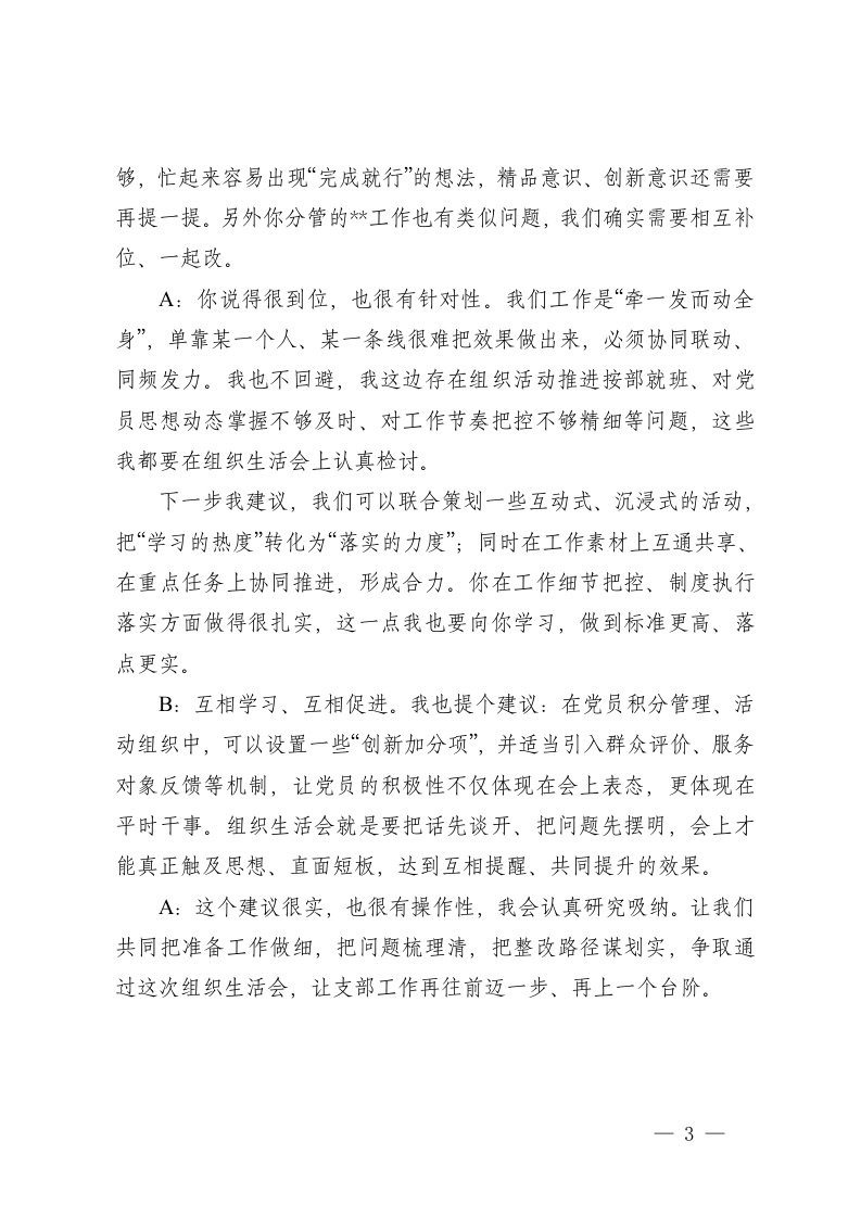 标题:2025年度组织生活会会前谈心谈话记录普通党员间支委与支委
