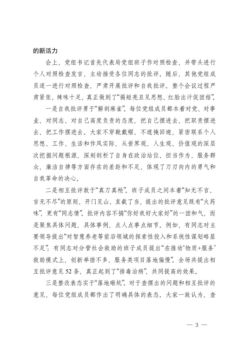 标题:4篇2025年度机关单位党组民主生活会召开情况的总结报告