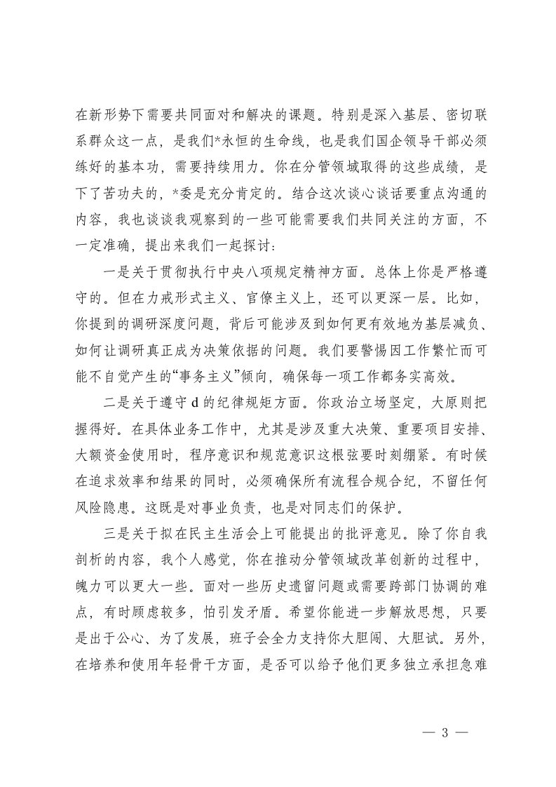标题:2025年度民主生活会组织生活会相互批评意见会前谈心谈话记录