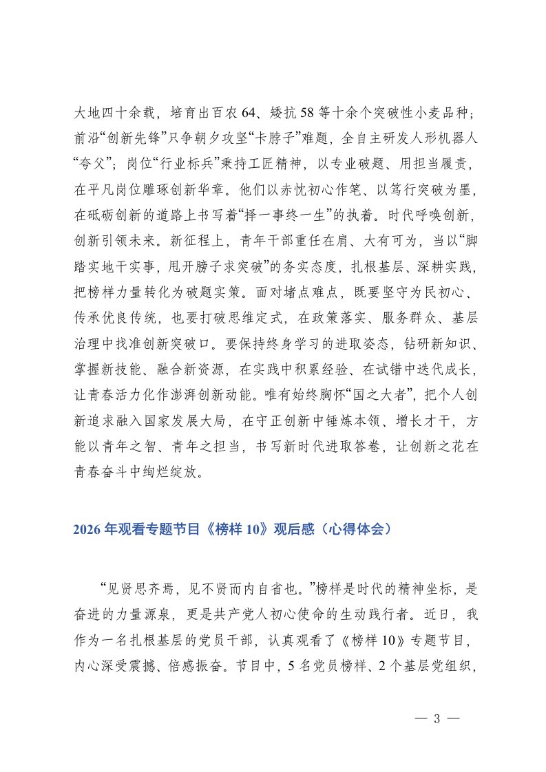 标题:2026年青年党员干部观榜样10观后感心得体会