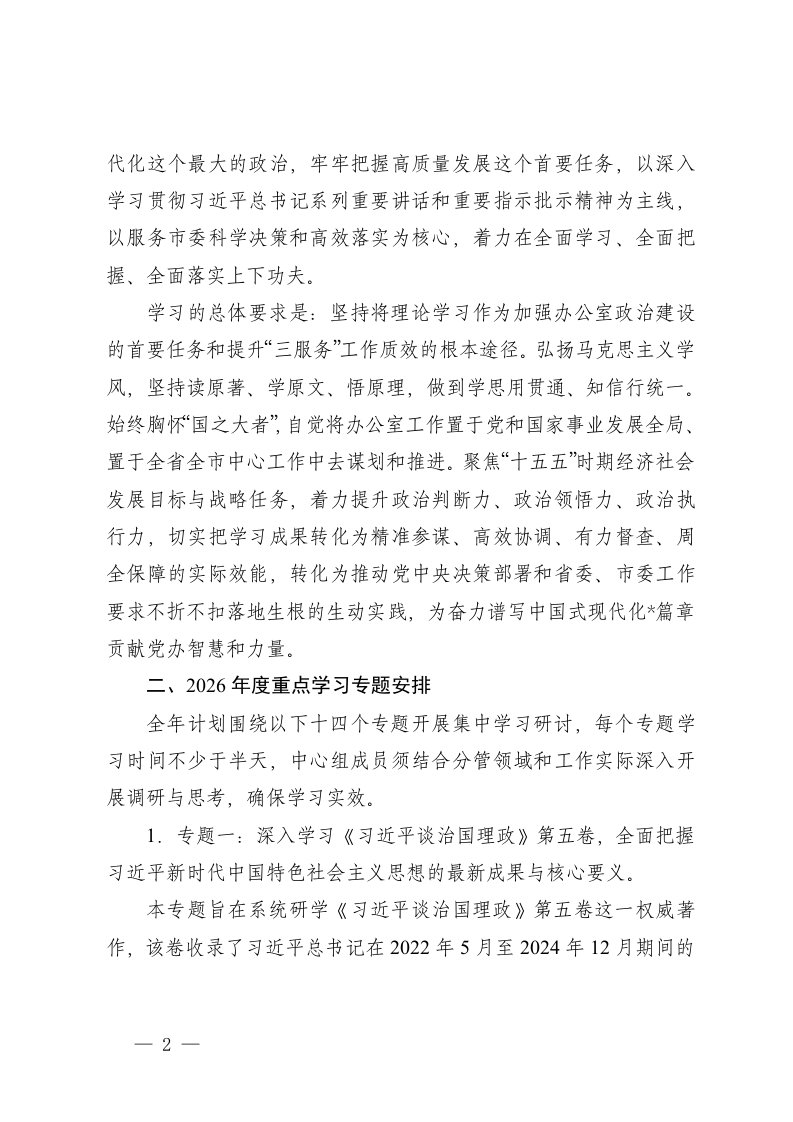 标题:汇编办公室理论学习中心组2026年度专题学习计划