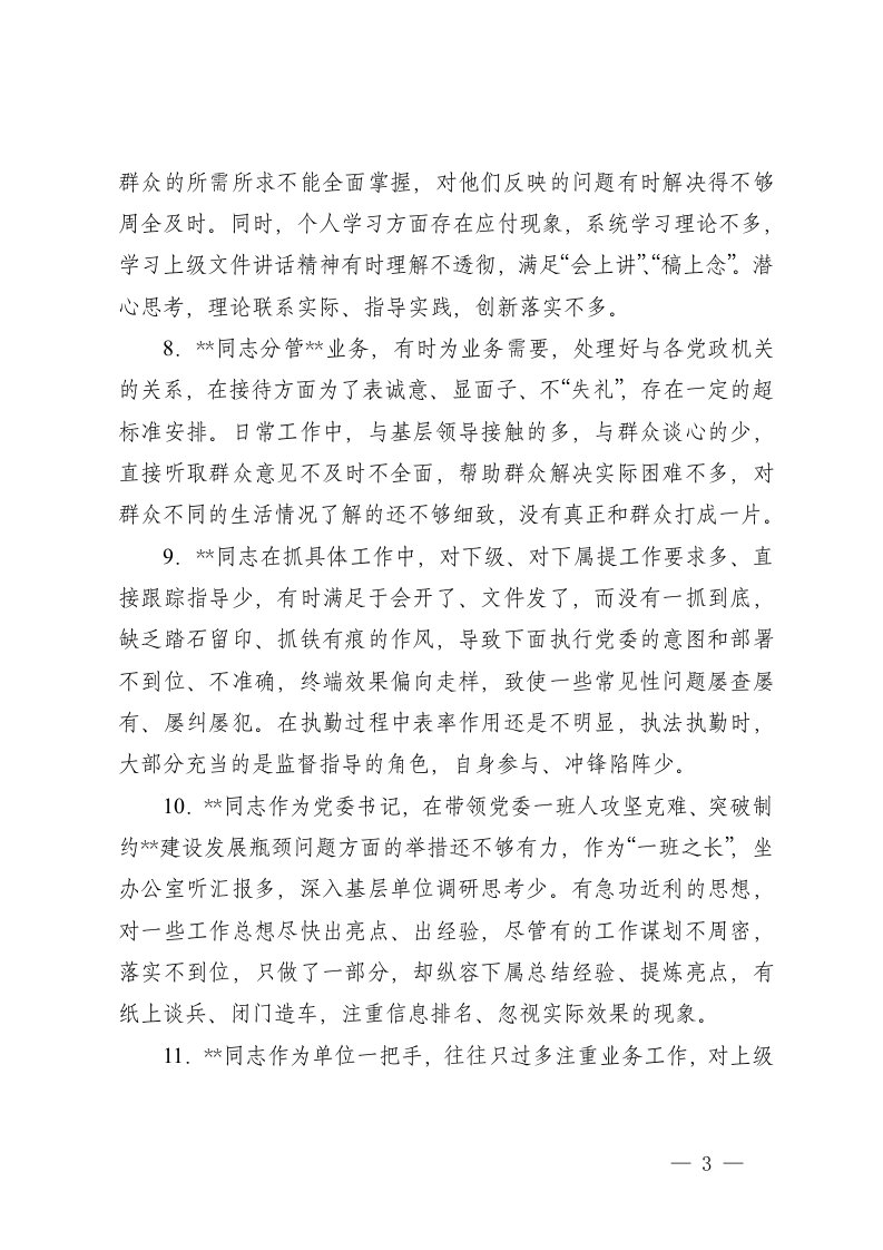 2025年度民主生活会组织生活会相互批评意见班子成员聚焦五个带头相互批评意见清单