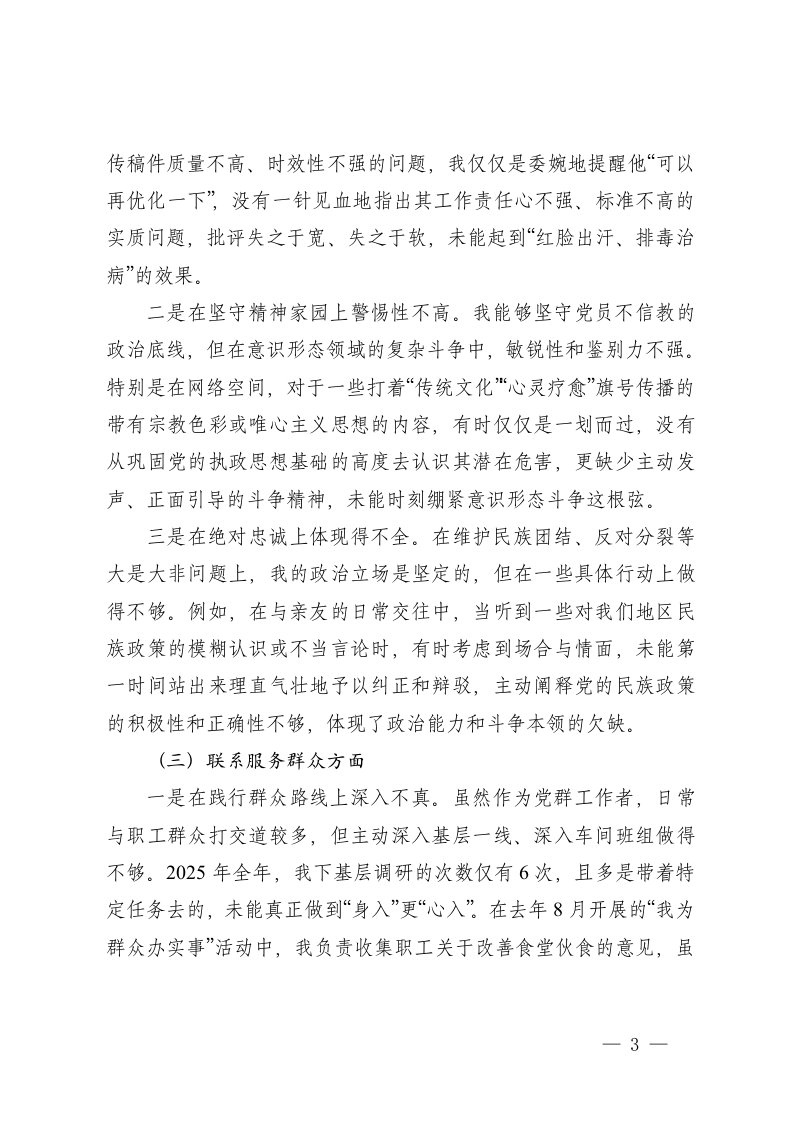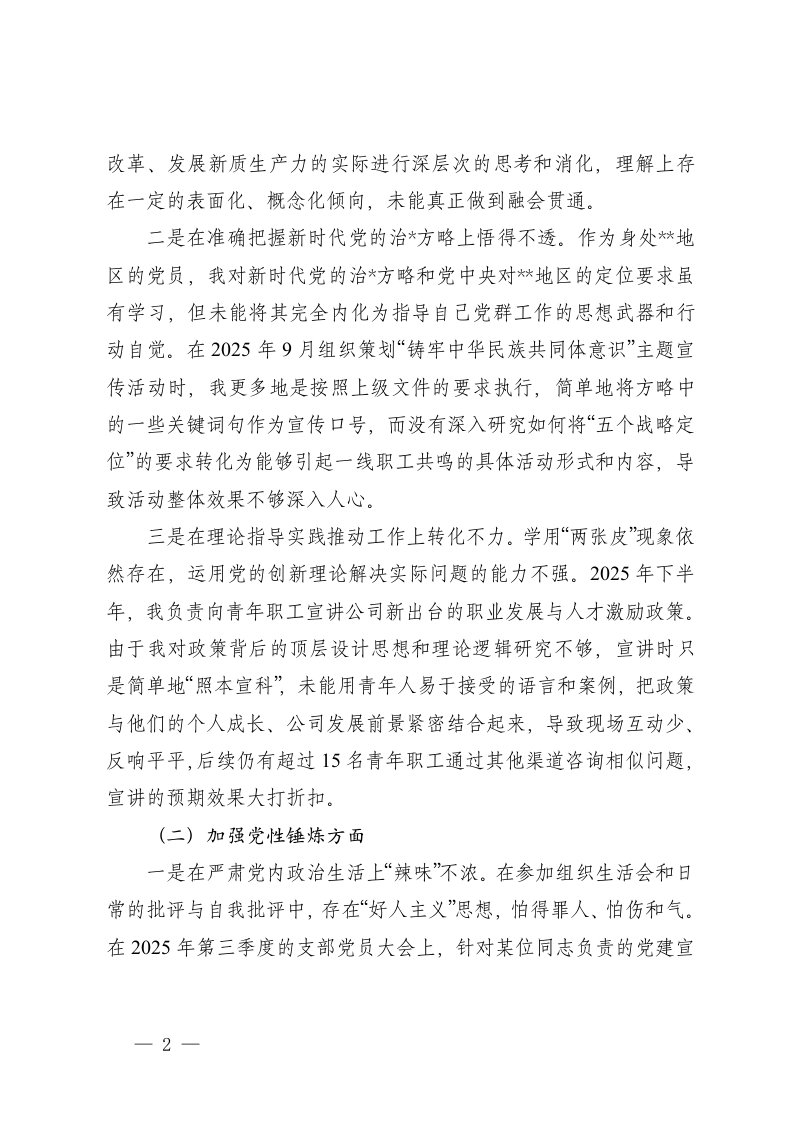 标题:2025年度组织生活会个人班子对照在学习贯彻党的创新理论方面存在的不足