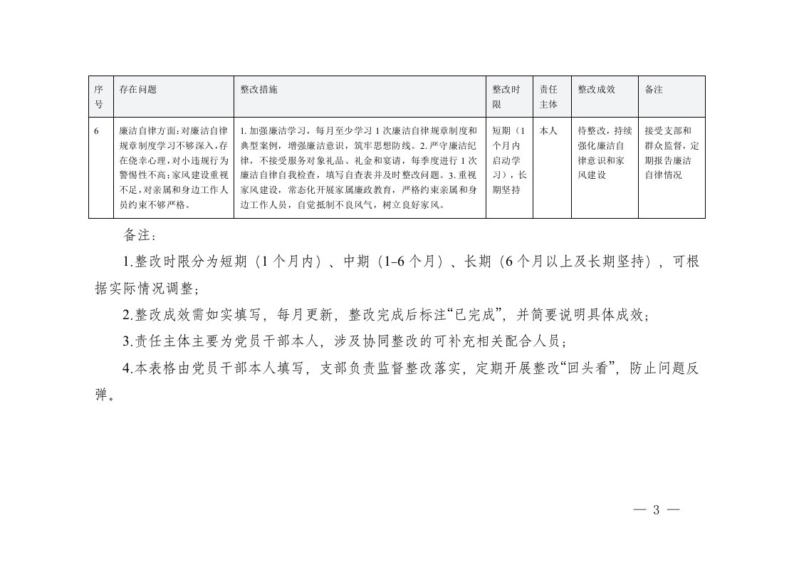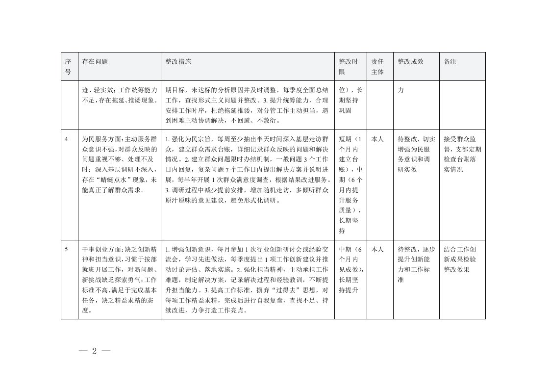 标题:2025年组织生活会党员干部问题整改措施表