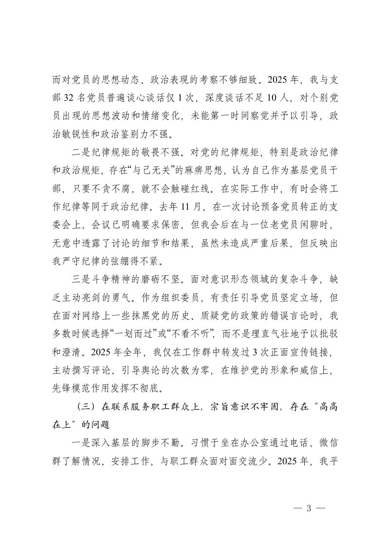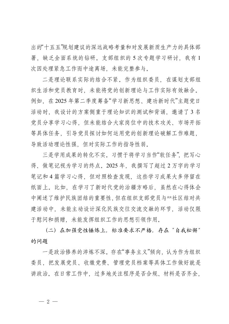 党支部2025年度组织生活会个人对照在学习贯彻党的创新理论在加强党性锤炼在联系服务群众在发挥先锋模范作用在改作风树新风存在的不足