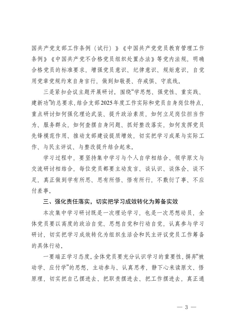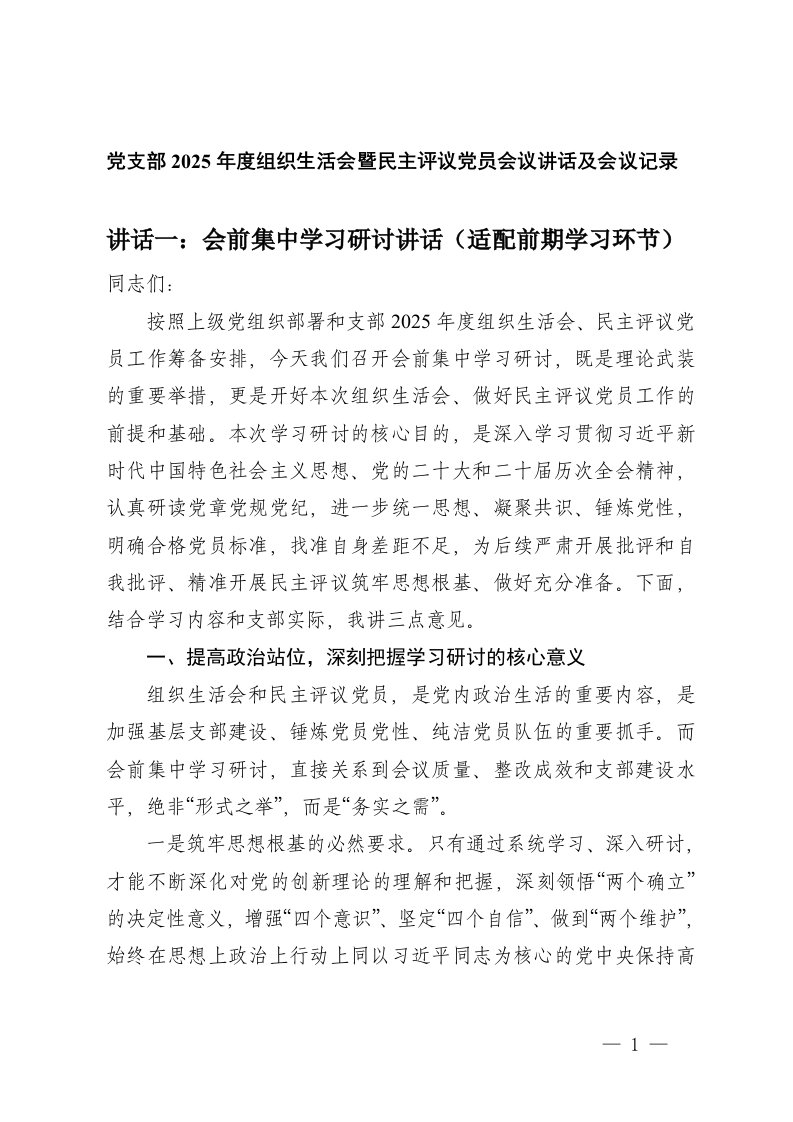 标题:党支部2025年度组织生活会暨民主评议党员会议讲话及会议记录