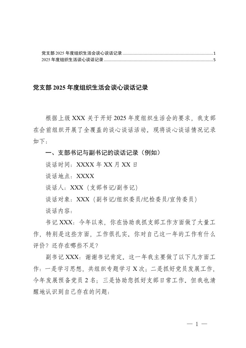 组织生活会,党支部,组织生活,谈心谈话,生活党支部2025年度组织生活会谈心谈话记录2份组织生活会,党支部,组织生活,谈心谈话,生活党支部2025年度组织生活会谈心谈话记录2份