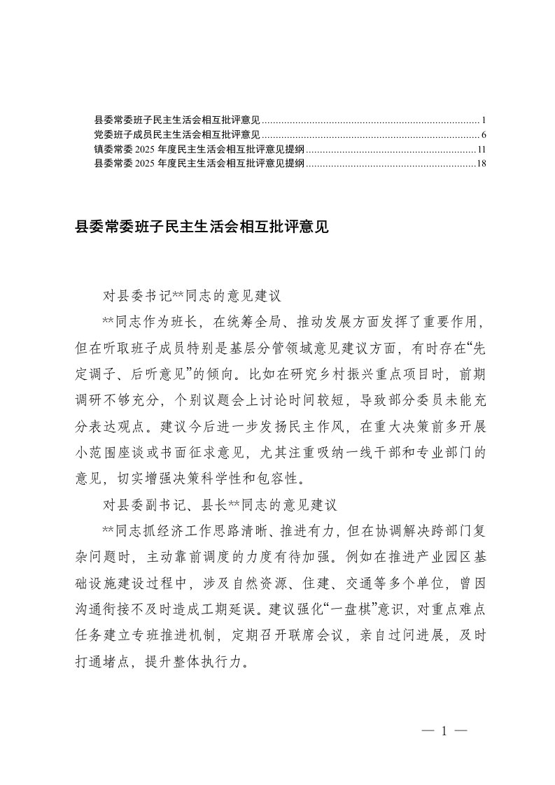 民主生活会,批评意见,党委,意见,县委,生活县委常委班子党委班子镇委班子2025年度民主生活会相互批评意见民主生活会,批评意见,党委,意见,县委,生活县委常委班子党委班子镇委班子2025年度民主生活会相互批评意见